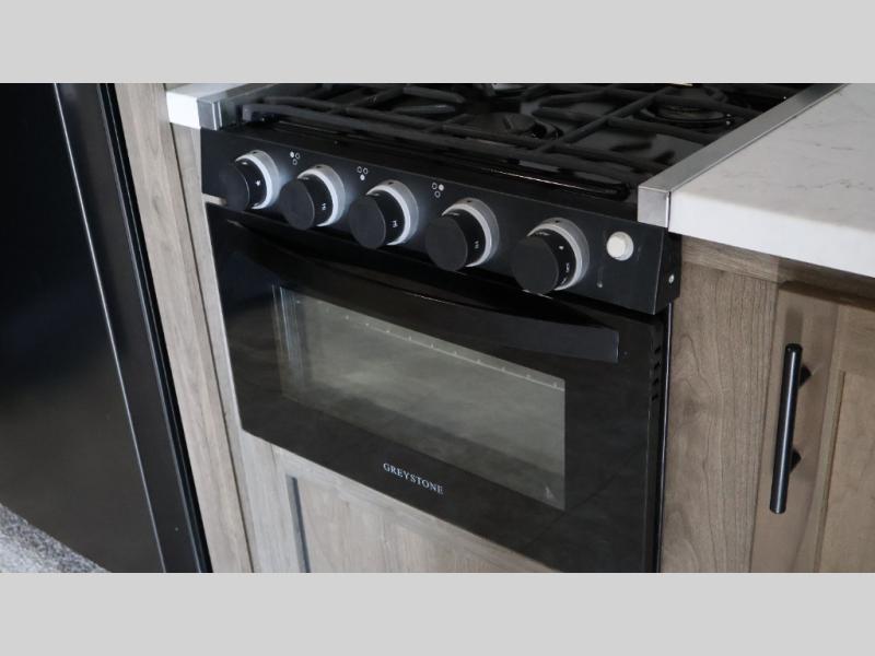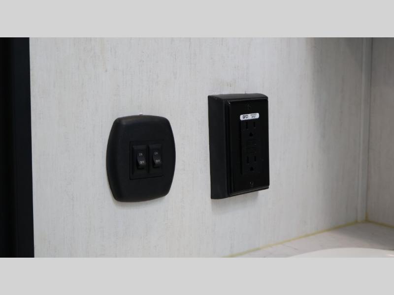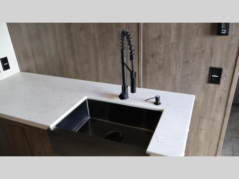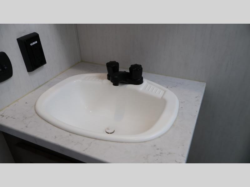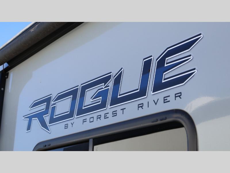 The Vengeance Rogue by Forest River is a budget-friendly toy hauler that you can really get on board with! Some of the features within the Rogue Platinum Package are the zebra shades that will keep light out, a glass shower enclosure, ultracold heated holding tank pads, and much more. There is an outside shower with hot and cold water so you can fill the dogs water bowl or wash the mud from your riding gear, and the enclosed underbelly will allow you to extend your camping season. You will love the look of the residential black stainless steel farm sink, along with seamless countertops and LED interior lighting with accents.