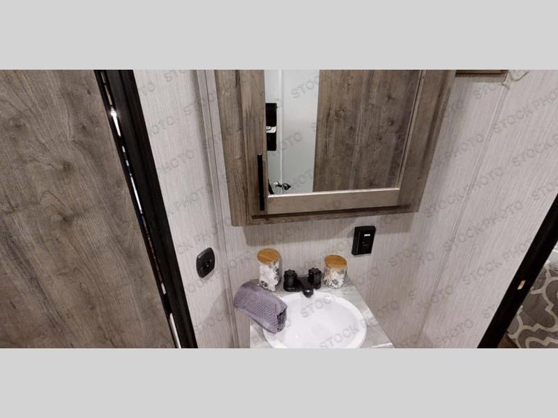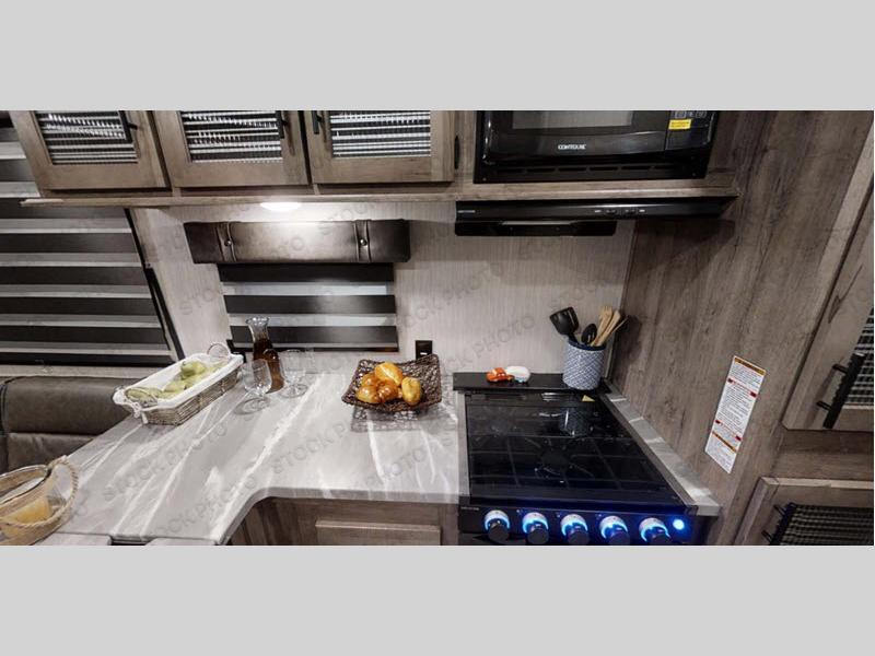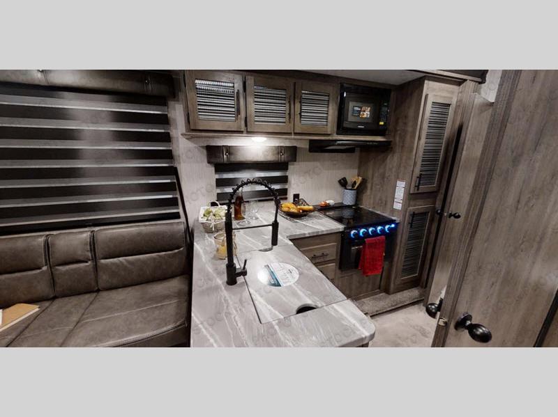 The Vengeance Rogue by Forest River is a budget-friendly toy hauler that you can really get on board with! Some of the features within the Rogue Platinum Package are the zebra shades that will keep light out, a glass shower enclosure, ultracold heated holding tank pads, and much more. There is an outside shower with hot and cold water so you can fill the dogs water bowl or wash the mud from your riding gear, and the enclosed underbelly will allow you to extend your camping season. You will love the look of the residential black stainless steel farm sink, along with seamless countertops and LED interior lighting with accents.