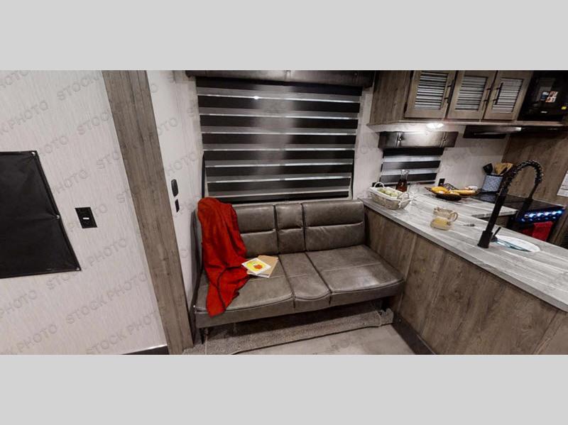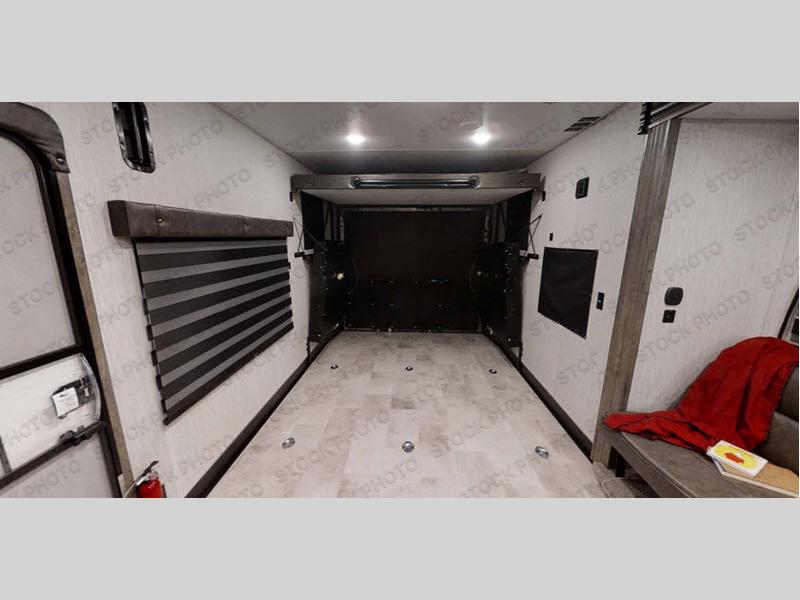 Bring along your kayaks, dirt bikes, or even a side-by-side in this toy hauler. There is 15' 10" total garage space, and a ramp door for easy unloading. Once your toys are out, enjoy lunch at the roll-over sofas, or let your guests rest on the quick set queen bed system before heading out. There is a dual entry bath to clean up in each day, and the Rogue king bed is sure to bring sweet dreams. In the morning, prepare eggs and bacon on the three burner cooktop, and the milk can go back in the 10.1 cu. ft. residential refrigerator. This model also includes a flip-up sofa for more seating and sleeping space, and you can add the optional lounge chairs too!