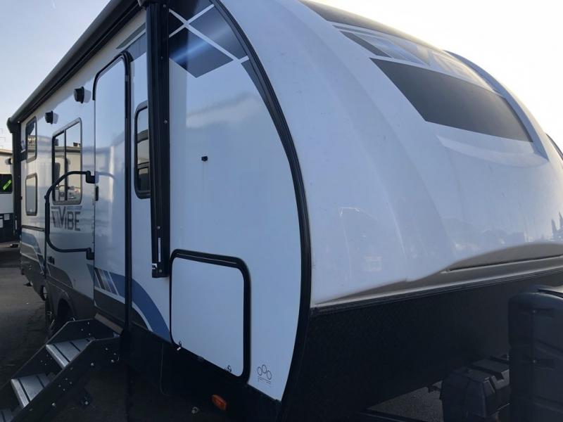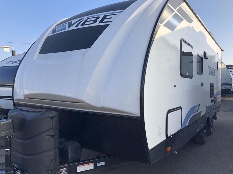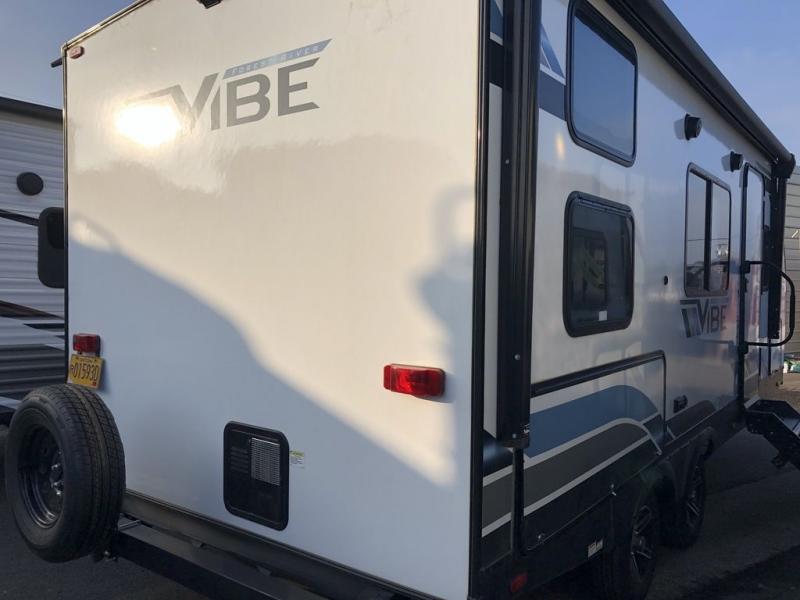 Each Vibe travel trailer by Forest River includes Hyper Lyte construction and a durable laminated "Aluma Frame" for years of use. The heated and enclosed underbelly allows you to extend your camping season, and the LED-lit exterior speakers will keep the party going as you grill outdoors and visit with family. Inside, you'll find LED lights to keep everything bright and open, a Bluetooth stereo, roller shades for your privacy, and many more amenities per region. These models also include cable and satellite prep and a digital TV antenna with a booster so you can stay connected to the outside world if you choose. Make the easy choice and choose a Vibe travel trailer today!