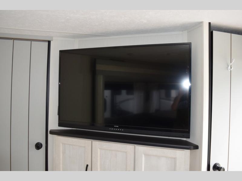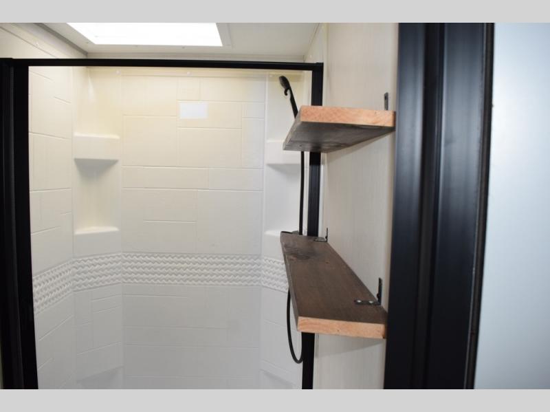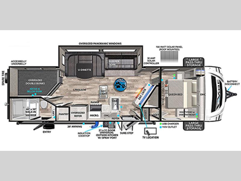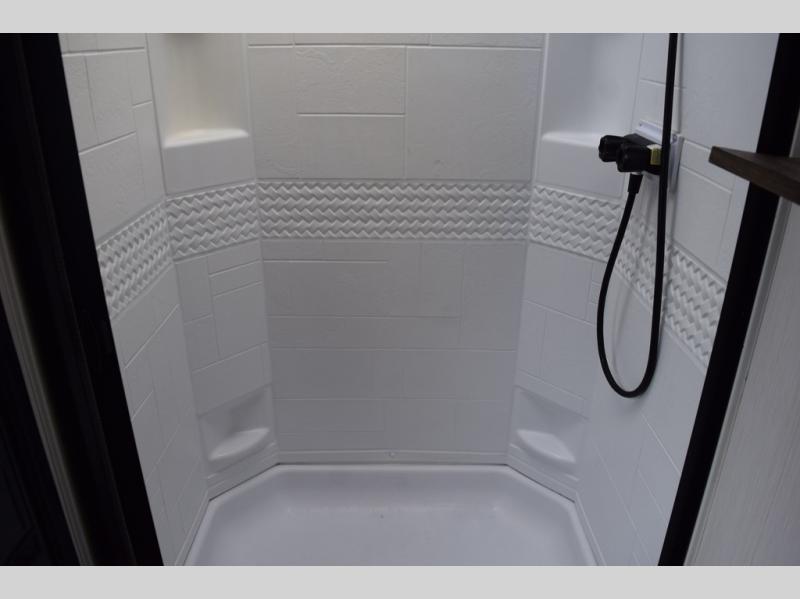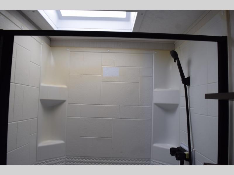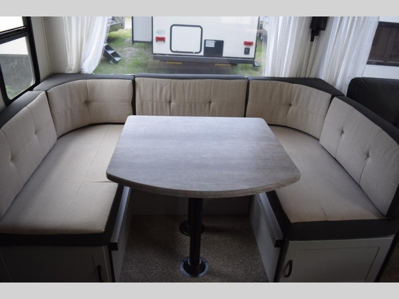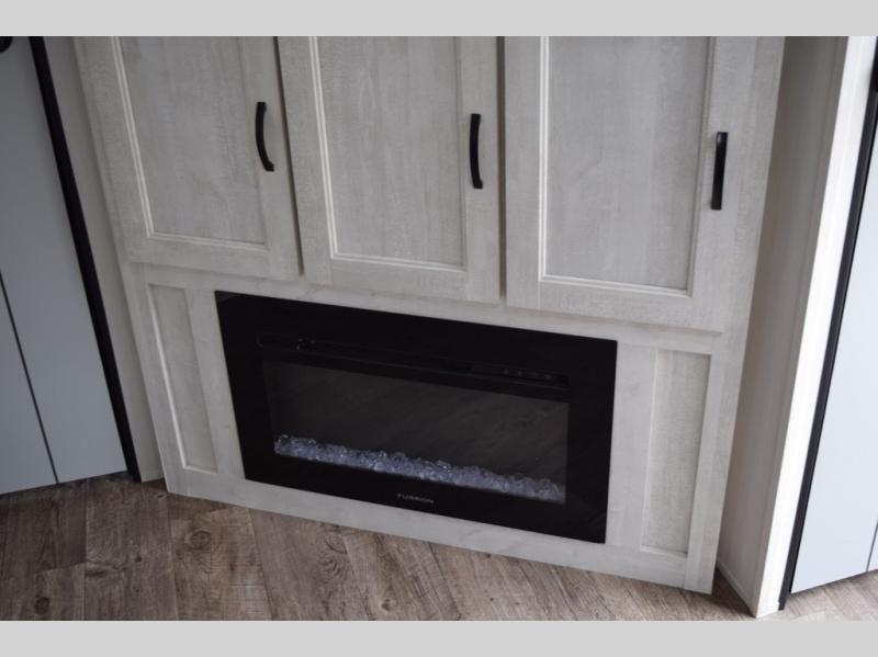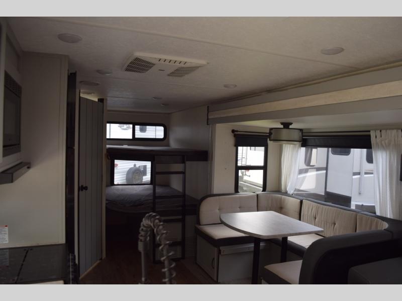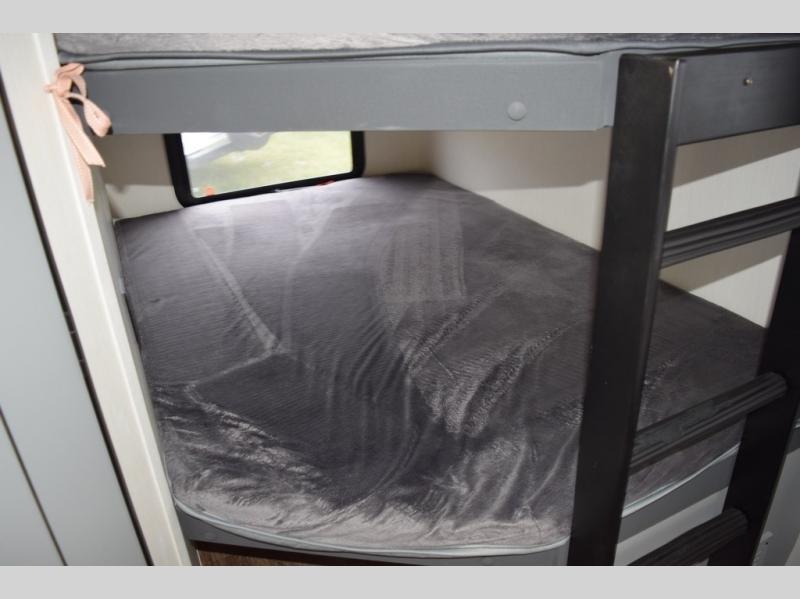 Are you looking to upgrade your RV to a trailer with more space and more features? Look no further than this Vibe that can sleep ten people each night. The kids are sure to claim the double-size bunks to themselves, while the adults take the front private bedroom with the queen bed. You will find even more sleeping space on the U-shaped dinette and sleeper sofa within the large slide out. After a day outdoors at the lake, get cleaned up in the full bath that includes a 40" x 30" walk-in shower and its own exterior entry door for convenience. There is so much more to love about this model, like the fireplace and entertainment center, the oversized panoramic windows, and the large pass-through storage for all your gear!