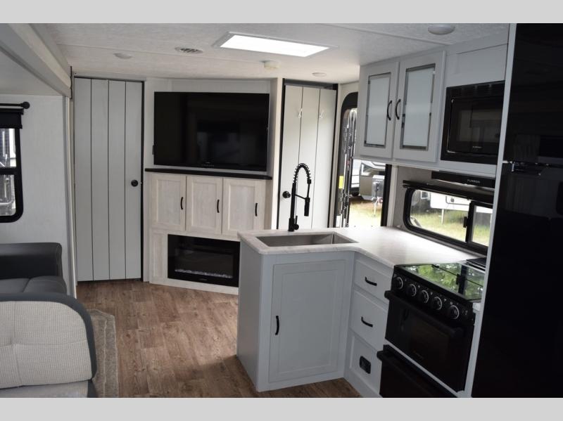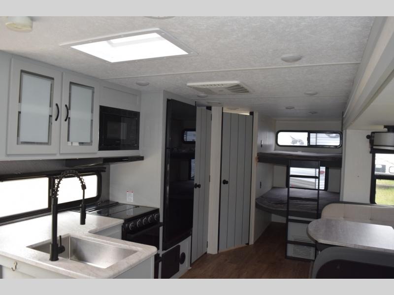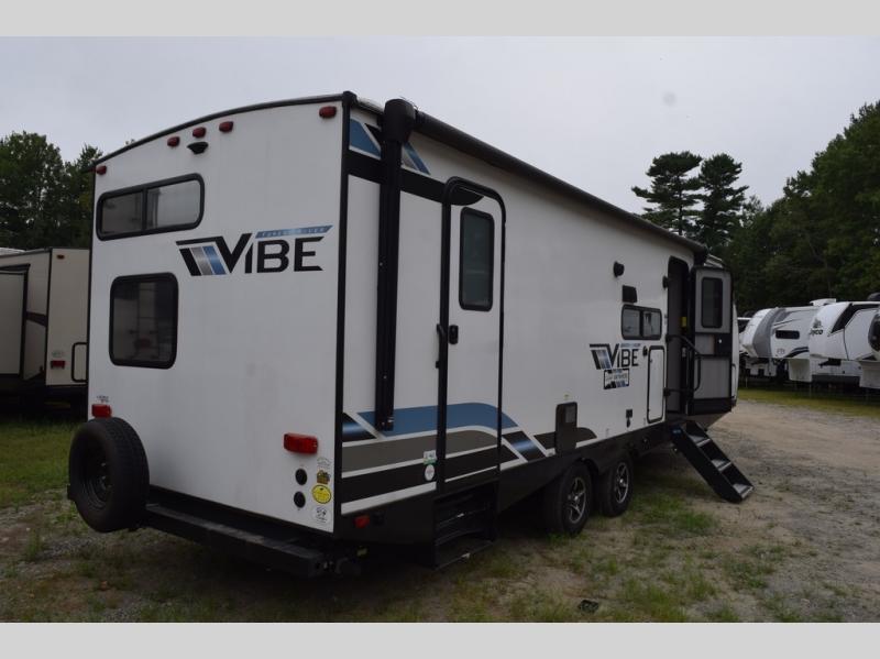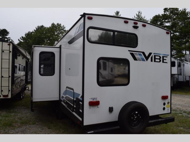Each Vibe travel trailer by Forest River includes Hyper Lyte construction and a durable laminated "Aluma Frame" for years of use. The heated and enclosed underbelly allows you to extend your camping season, and the LED-lit exterior speakers will keep the party going as you grill outdoors and visit with family. Inside, you'll find LED lights to keep everything bright and open, a Bluetooth stereo, roller shades for your privacy, and many more amenities per region. These models also include cable and satellite prep and a digital TV antenna with a booster so you can stay connected to the outside world if you choose. Make the easy choice and choose a Vibe travel trailer today!