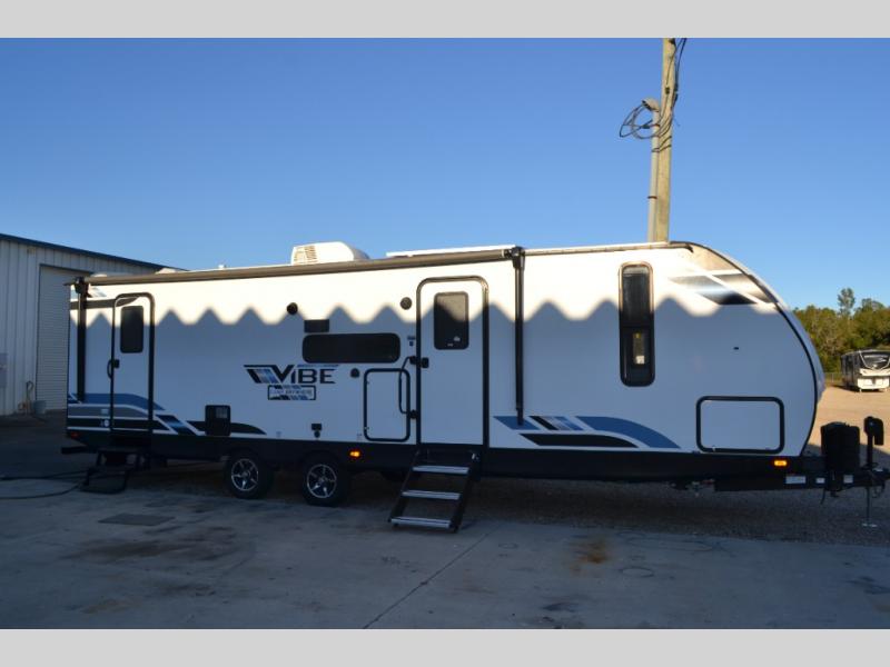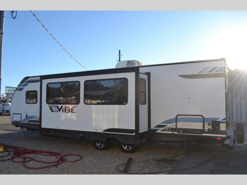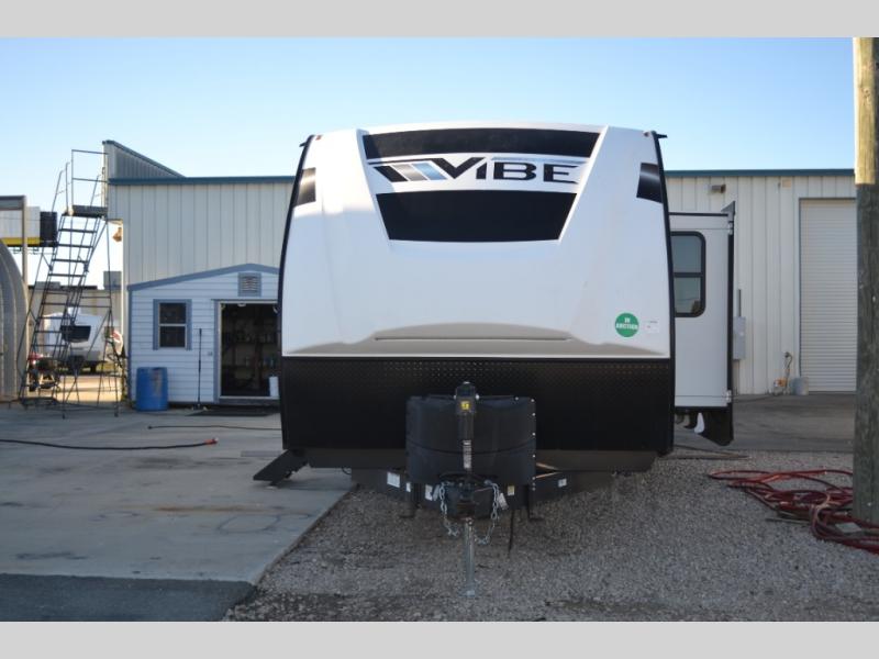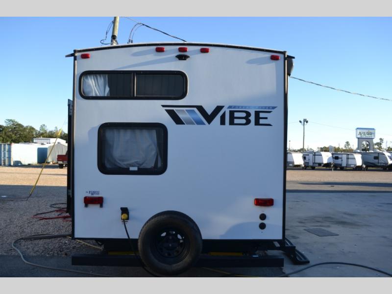 Each Vibe travel trailer by Forest River includes Hyper Lyte construction and a durable laminated "Aluma Frame" for years of use. The heated and enclosed underbelly allows you to extend your camping season, and the LED-lit exterior speakers will keep the party going as you grill outdoors and visit with family. Inside, you'll find LED lights to keep everything bright and open, a Bluetooth stereo, roller shades for your privacy, and many more amenities per region. These models also include cable and satellite prep and a digital TV antenna with a booster so you can stay connected to the outside world if you choose. Make the easy choice and choose a Vibe travel trailer today!