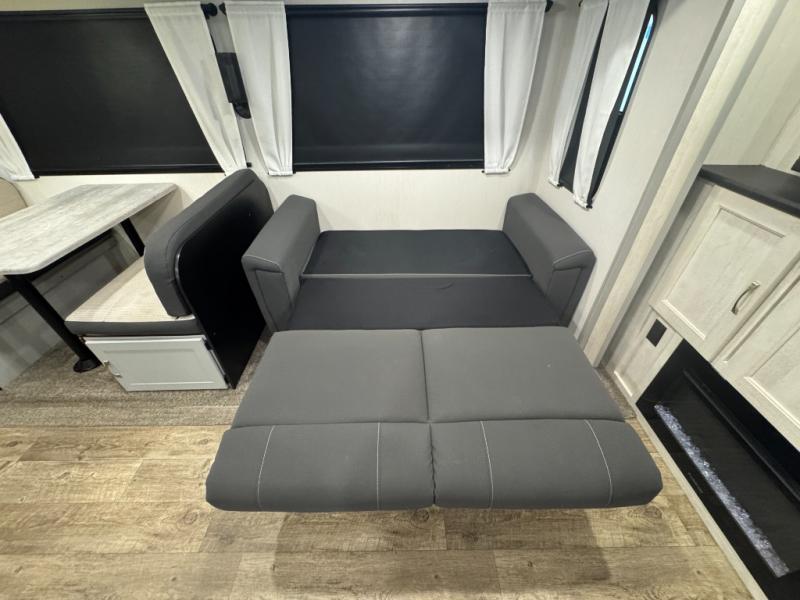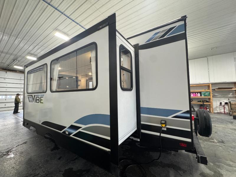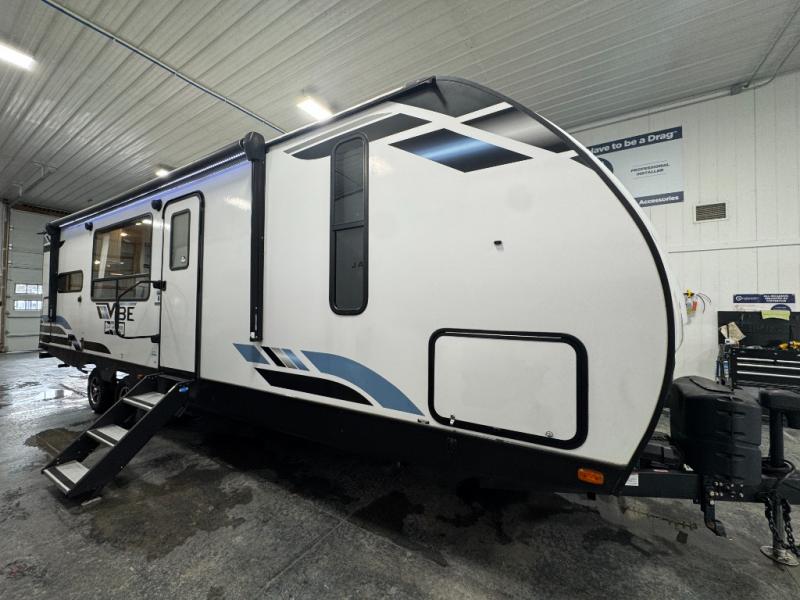 Each Vibe travel trailer by Forest River includes Hyper Lyte construction and a durable laminated "Aluma Frame" for years of use. The heated and enclosed underbelly allows you to extend your camping season, and the LED-lit exterior speakers will keep the party going as you grill outdoors and visit with family. Inside, you'll find LED lights to keep everything bright and open, a Bluetooth stereo, roller shades for your privacy, and many more amenities per region. These models also include cable and satellite prep and a digital TV antenna with a booster so you can stay connected to the outside world if you choose. Make the easy choice and choose a Vibe travel trailer today!