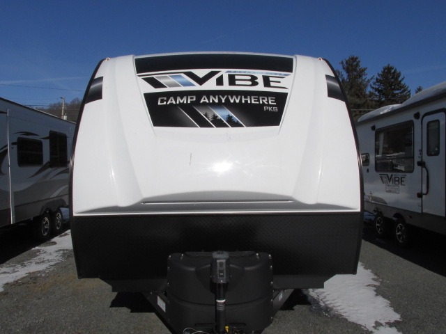 Each Vibe travel trailer by Forest River includes Hyper Lyte construction and a durable laminated "Aluma Frame" for years of use. The heated and enclosed underbelly allows you to extend your camping season, and the LED-lit exterior speakers will keep the party going as you grill outdoors and visit with family. Inside, you'll find LED lights to keep everything bright and open, a Bluetooth stereo, roller shades for your privacy, and many more amenities per region. These models also include cable and satellite prep and a digital TV antenna with a booster so you can stay connected to the outside world if you choose. Make the easy choice and choose a Vibe travel trailer today!
