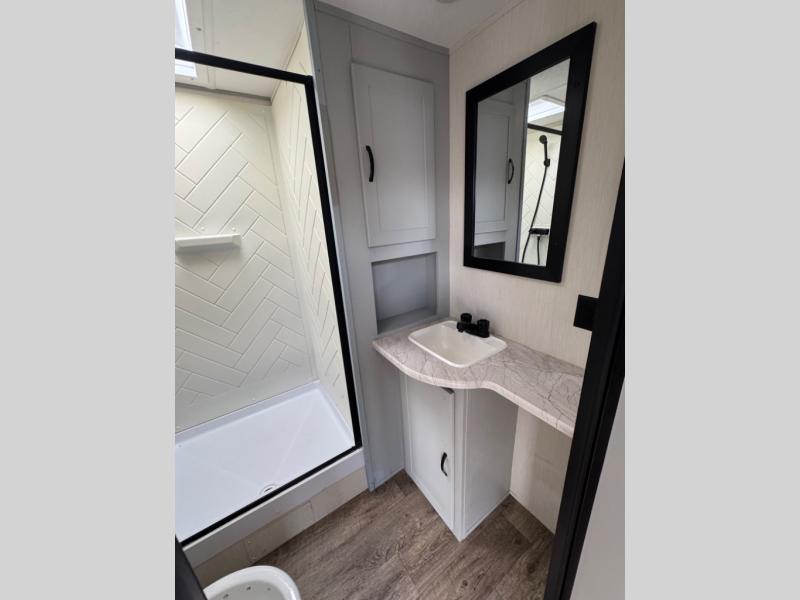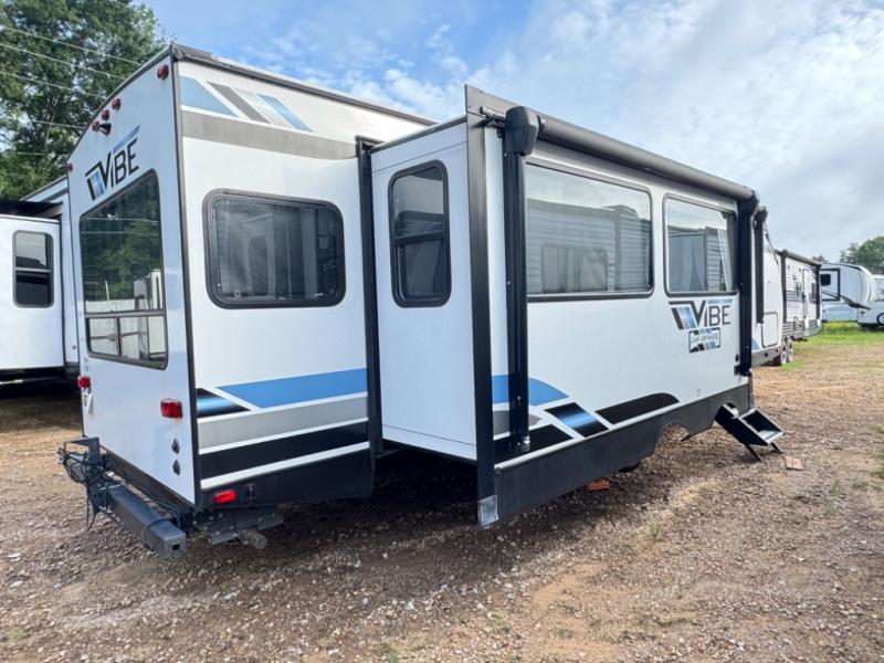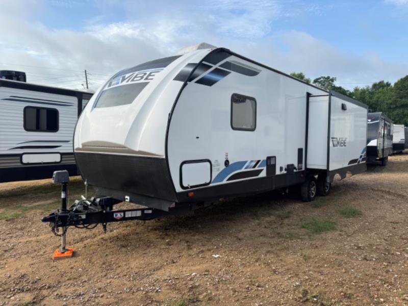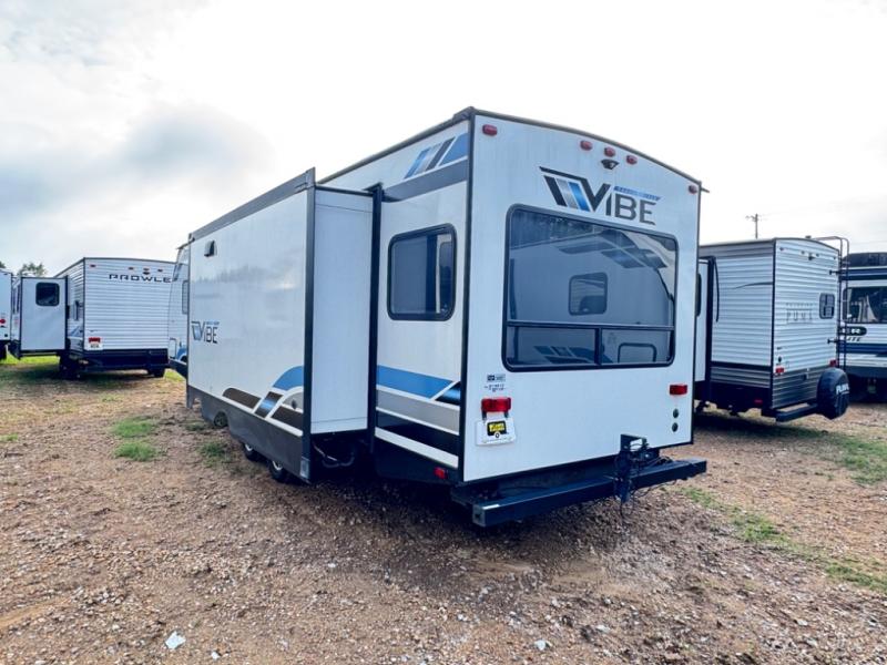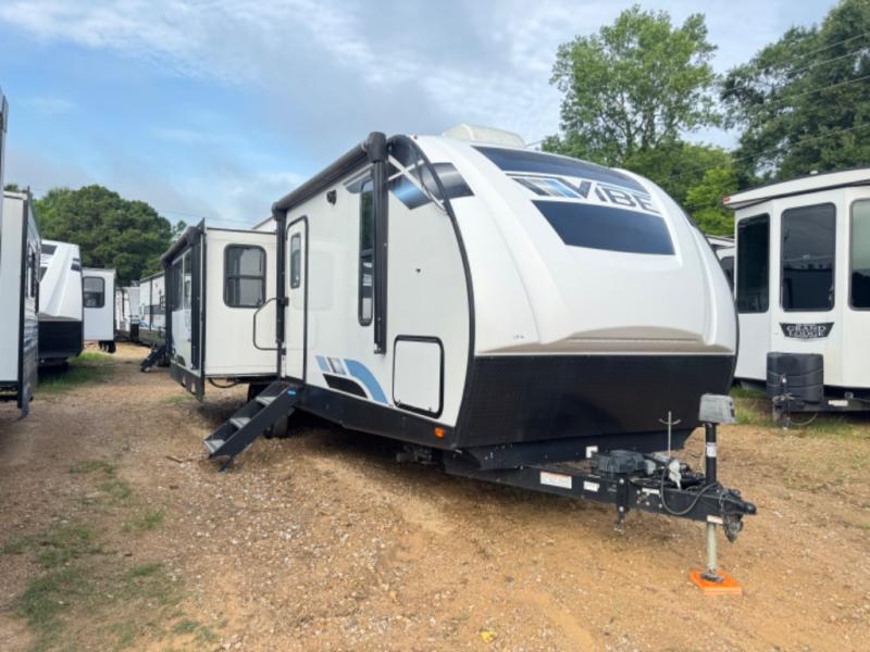 Each Vibe travel trailer by Forest River includes Hyper Lyte construction and a durable laminated "Aluma Frame" for years of use. The heated and enclosed underbelly allows you to extend your camping season, and the LED-lit exterior speakers will keep the party going as you grill outdoors and visit with family. Inside, you'll find LED lights to keep everything bright and open, a Bluetooth stereo, roller shades for your privacy, and many more amenities per region. These models also include cable and satellite prep and a digital TV antenna with a booster so you can stay connected to the outside world if you choose. Make the easy choice and choose a Vibe travel trailer today!