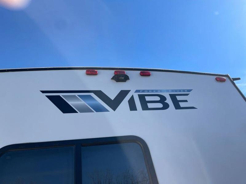 Each Vibe travel trailer by Forest River includes Hyper Lyte construction and a durable laminated "Aluma Frame" for years of use. The heated and enclosed underbelly allows you to extend your camping season, and the LED-lit exterior speakers will keep the party going as you grill outdoors and visit with family. Inside, you'll find LED lights to keep everything bright and open, a Bluetooth stereo, roller shades for your privacy, and many more amenities per region. These models also include cable and satellite prep and a digital TV antenna with a booster so you can stay connected to the outside world if you choose. Make the easy choice and choose a Vibe travel trailer today!