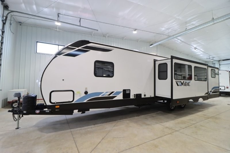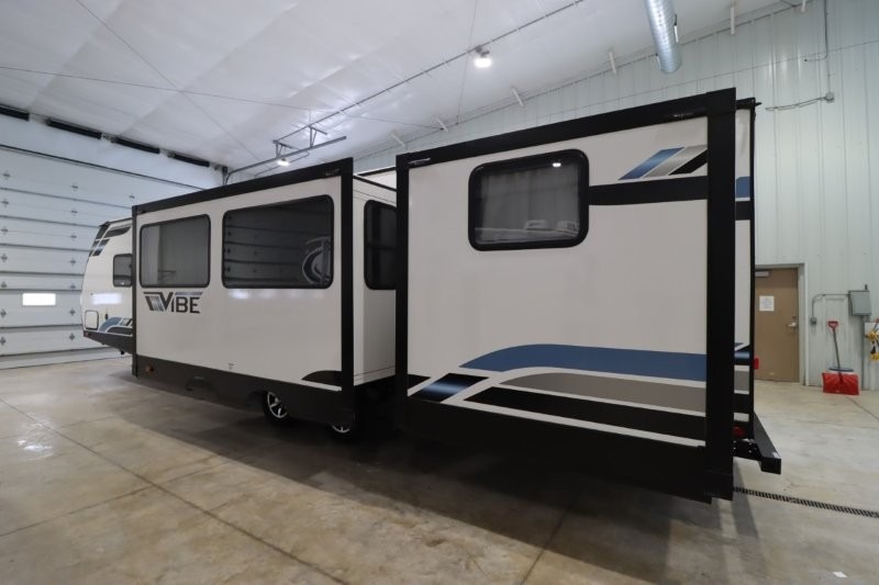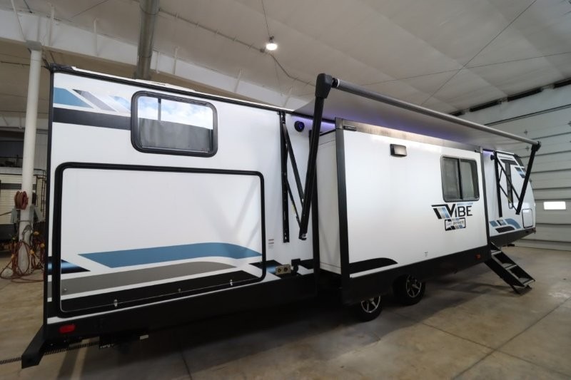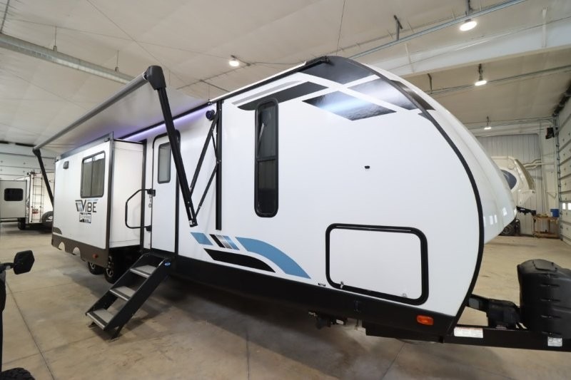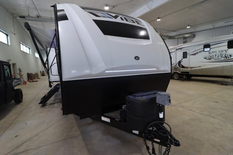 Each Vibe travel trailer by Forest River includes Hyper Lyte construction and a durable laminated "Aluma Frame" for years of use. The heated and enclosed underbelly allows you to extend your camping season, and the LED-lit exterior speakers will keep the party going as you grill outdoors and visit with family. Inside, you'll find LED lights to keep everything bright and open, a Bluetooth stereo, roller shades for your privacy, and many more amenities per region. These models also include cable and satellite prep and a digital TV antenna with a booster so you can stay connected to the outside world if you choose. Make the easy choice and choose a Vibe travel trailer today!