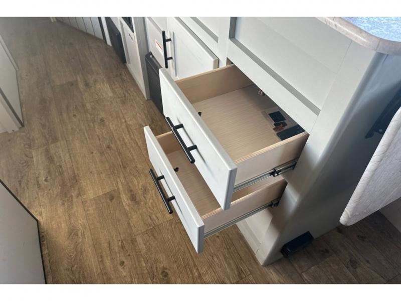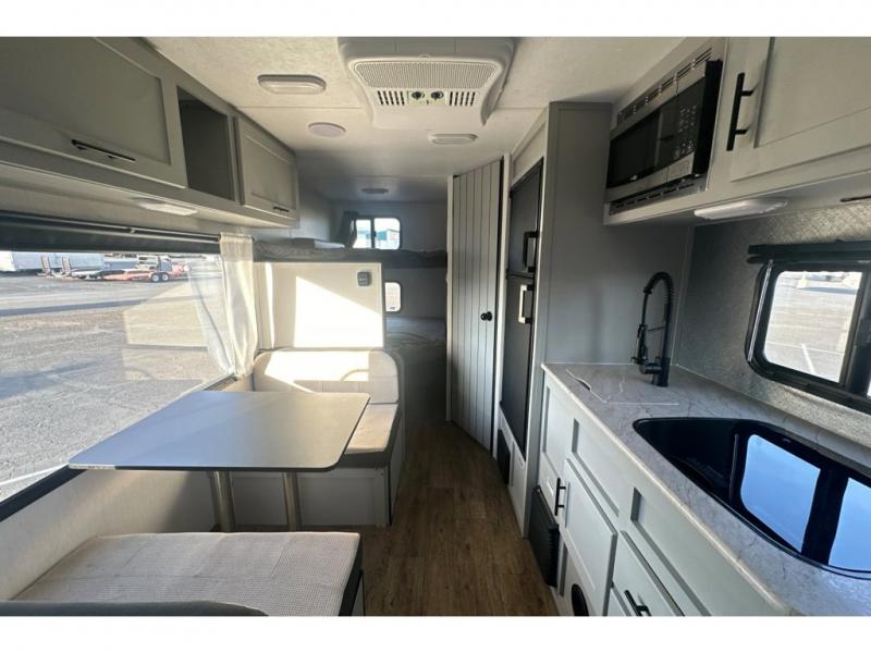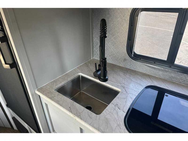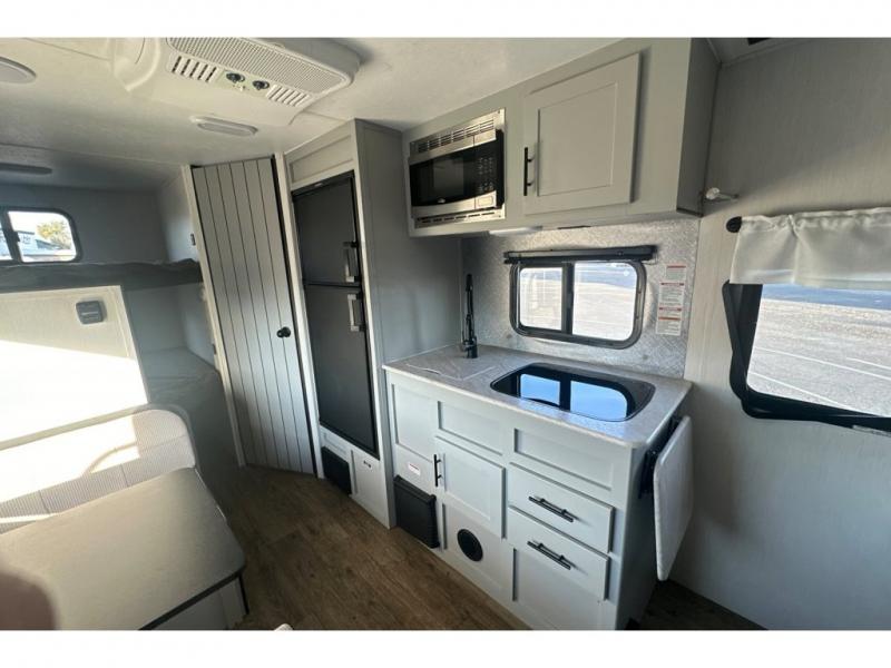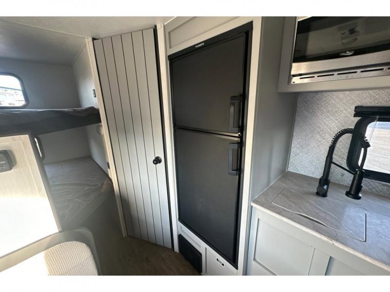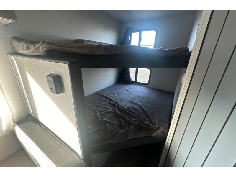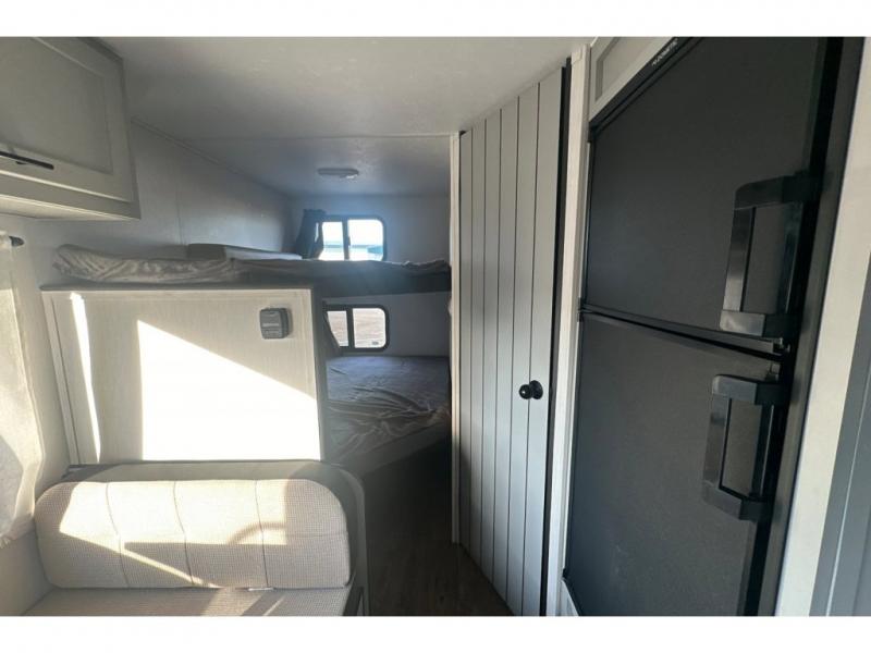 This easy-to-tow travel trailer is perfect for the family looking for adventure without having to buy a new truck to pull your RV. The kids or your guests will claim the double-size bunks, while you take the front Murphy bed. In the morning, just fold up the bed to enjoy seating space on the sofa! Everyone will appreciate having a full bath on board to clean up each day, and the chef of the group will have full kitchen amenities to prepare meals. This model also includes an outside kitchen prep station with a refrigerator and an outdoor grill for burgers and hot dogs!