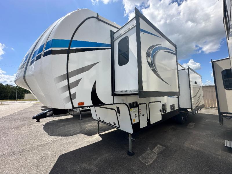 Spacious, stylish, and built for the road—the 2022 Wildcat 333RLBS delivers luxury living with a rear lounge, island kitchen, king bed, and auto-leveling. Comfort and convenience wherever you roam!