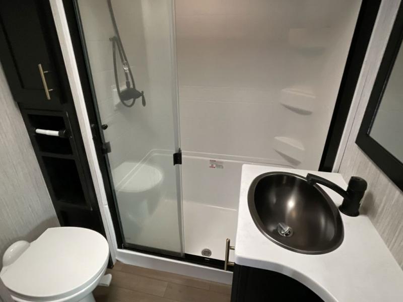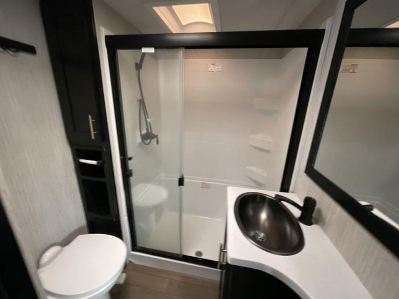 With any Wildcat fifth wheel or travel trailer by Forest River you will appreciate durable construction, including a Maxx strong laminated aluminum floor on the travel trailers, and underbelly armor on the fifth wheels. The Maxx insulation package includes high-density block foam insulation, two 30 lb. LP tanks, and a 35,000 BTU furnace to keep you comfortable year around. Some of the interior comforts you are sure to appreciate are the bedroom reading lights on both sides of the bed, the foot pedal flush toilet in the bath, the Rose Gold door and drawer hardware, and more!