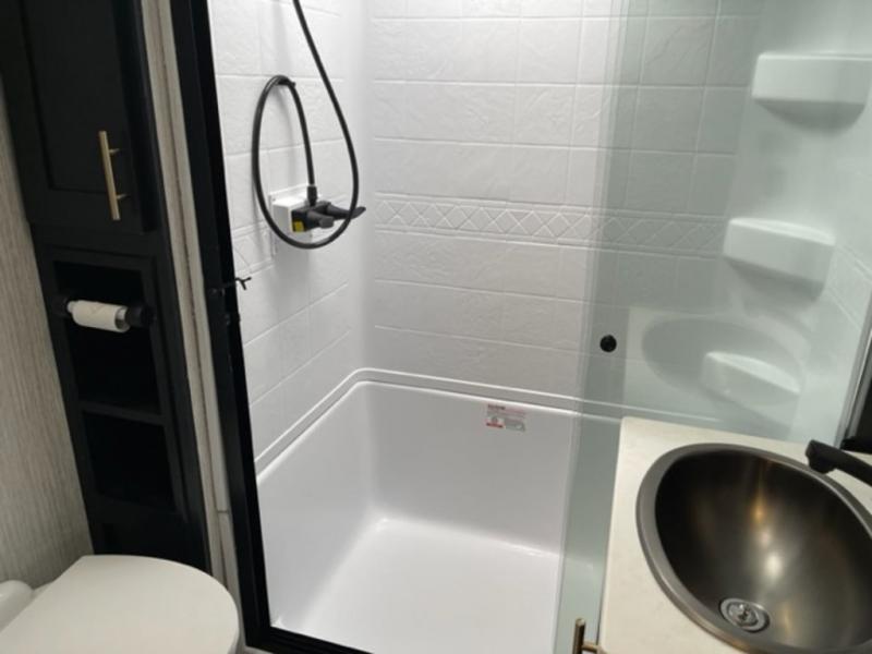 With any Wildcat fifth wheel or travel trailer by Forest River you will appreciate durable construction, including a Maxx strong laminated aluminum floor on the travel trailers, and underbelly armor on the fifth wheels. The Maxx insulation package includes high-density block foam insulation, two 30 lb. LP tanks, and a 35,000 BTU furnace to keep you comfortable year around. Some of the interior comforts you are sure to appreciate are the bedroom reading lights on both sides of the bed, the foot pedal flush toilet in the bath, the Rose Gold door and drawer hardware, and more!