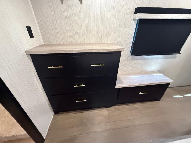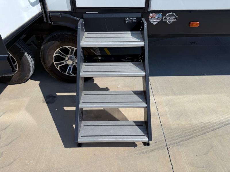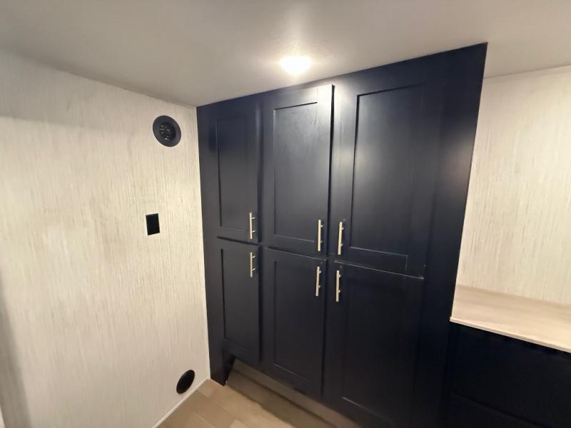 With any Wildcat fifth wheel or travel trailer by Forest River you will appreciate durable construction, including a Maxx strong laminated aluminum floor on the travel trailers, and underbelly armor on the fifth wheels. The Maxx insulation package includes high-density block foam insulation, two 30 lb. LP tanks, and a 35,000 BTU furnace to keep you comfortable year around. Some of the interior comforts you are sure to appreciate are the bedroom reading lights on both sides of the bed, the foot pedal flush toilet in the bath, the Rose Gold door and drawer hardware, and more!