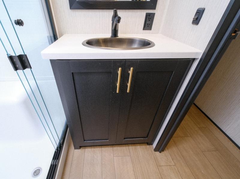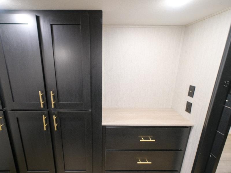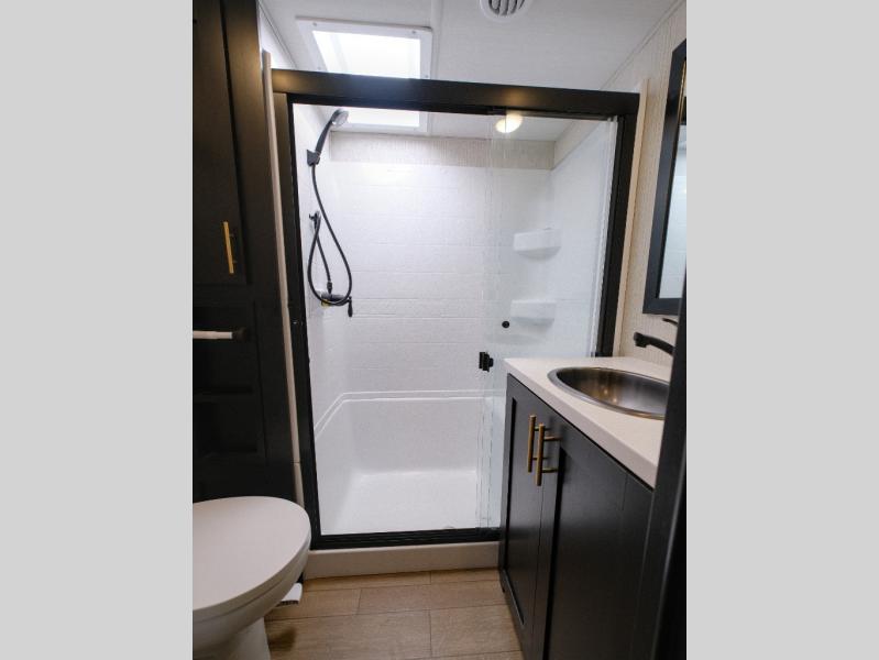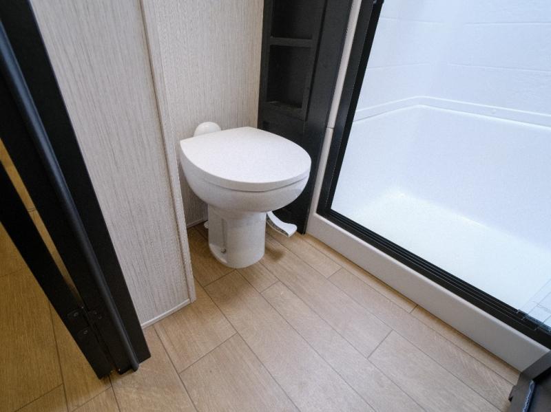 With any Wildcat fifth wheel or travel trailer by Forest River you will appreciate durable construction, including a Maxx strong laminated aluminum floor on the travel trailers, and underbelly armor on the fifth wheels. The Maxx insulation package includes high-density block foam insulation, two 30 lb. LP tanks, and a 35,000 BTU furnace to keep you comfortable year around. Some of the interior comforts you are sure to appreciate are the bedroom reading lights on both sides of the bed, the foot pedal flush toilet in the bath, the Rose Gold door and drawer hardware, and more!