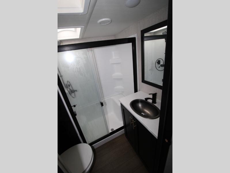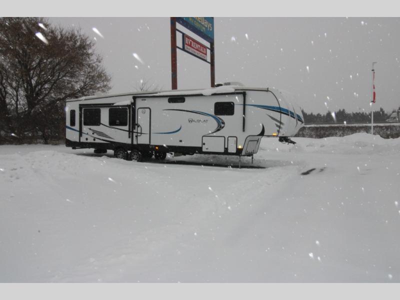 With any Wildcat fifth wheel or travel trailer by Forest River you will appreciate durable construction, including a Maxx strong laminated aluminum floor on the travel trailers, and underbelly armor on the fifth wheels. The Maxx insulation package includes high-density block foam insulation, two 30 lb. LP tanks, and a 35,000 BTU furnace to keep you comfortable year around. Some of the interior comforts you are sure to appreciate are the bedroom reading lights on both sides of the bed, the foot pedal flush toilet in the bath, the Rose Gold door and drawer hardware, and more!
