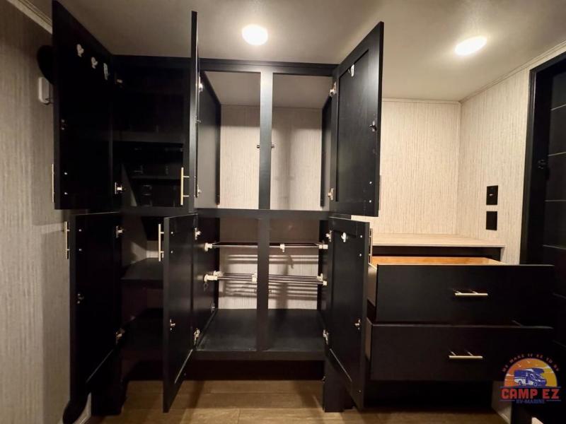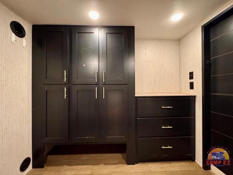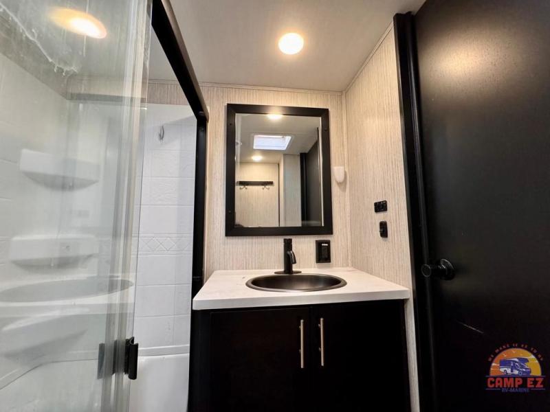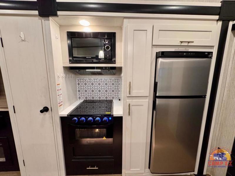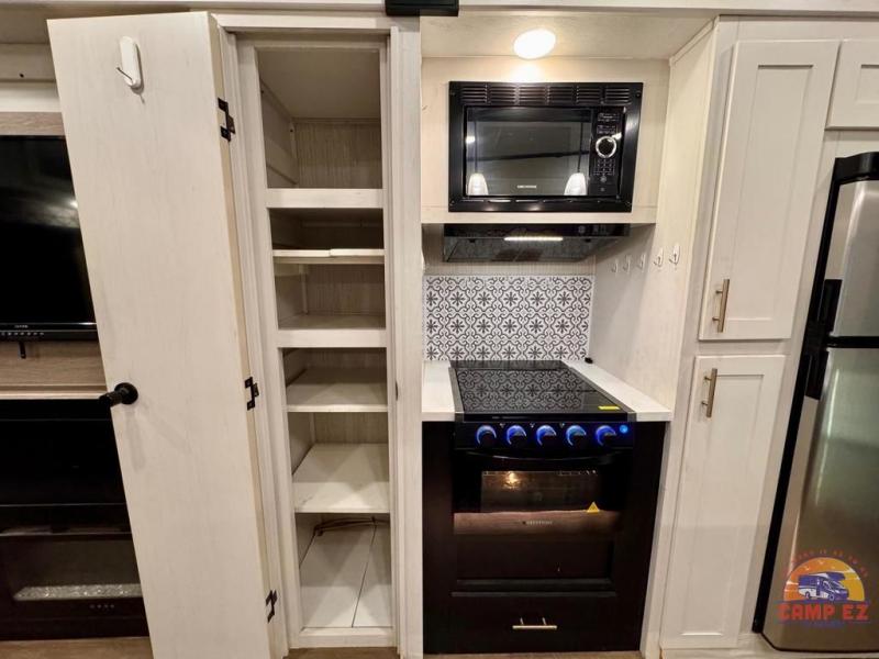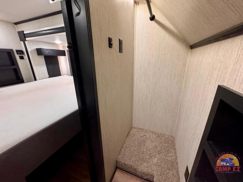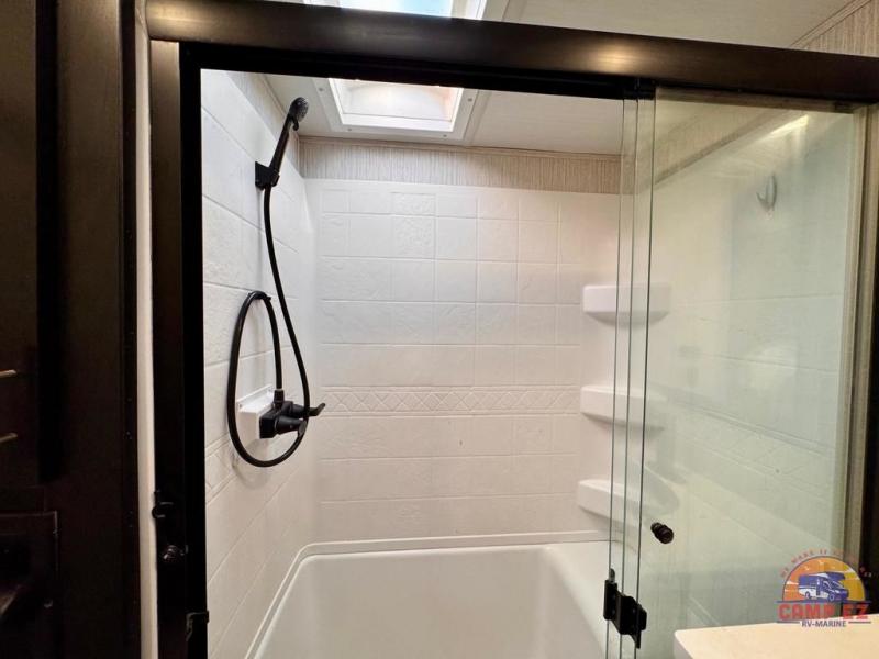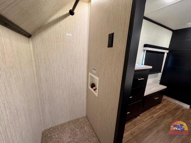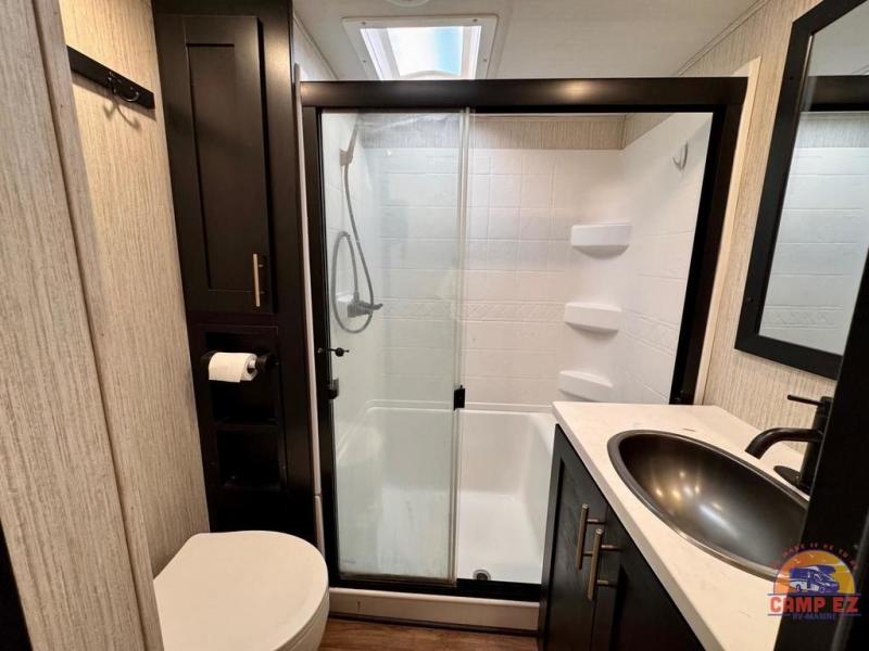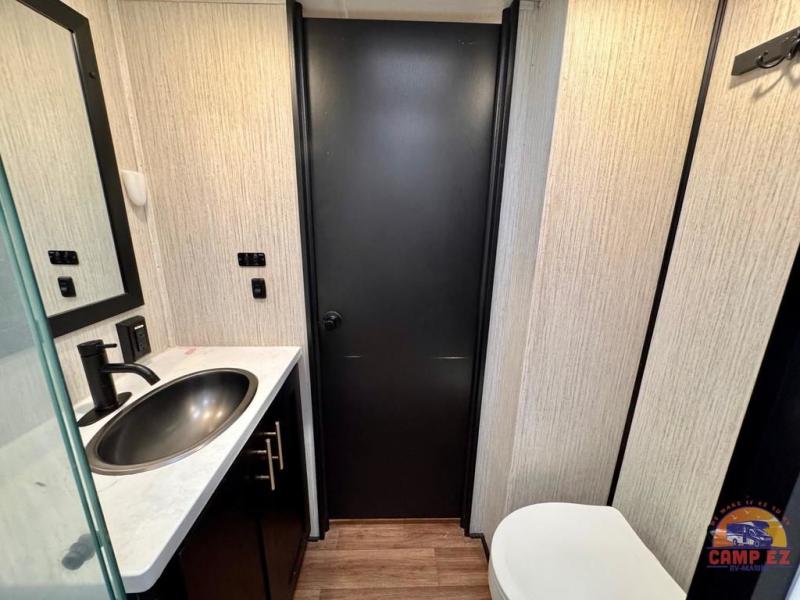With any Wildcat fifth wheel or travel trailer by Forest River you will appreciate durable construction, including a Maxx strong laminated aluminum floor on the travel trailers, and underbelly armor on the fifth wheels. The Maxx insulation package includes high-density block foam insulation, two 30 lb. LP tanks, and a 35,000 BTU furnace to keep you comfortable year around. Some of the interior comforts you are sure to appreciate are the bedroom reading lights on both sides of the bed, the foot pedal flush toilet in the bath, the Rose Gold door and drawer hardware, and more!