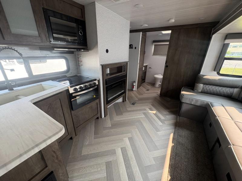 Forest River offers you the highest quality and the best components in its Wildwood travel trailer! The fully walkable one-piece roof is ultra reliable, and the rest of the construction is just as dependable with the powder-coated I-beam frame, cambered chassis, R-7 fiberglass insulation, nitrogen-filled tires, and triple-seal slide-out system. The Wildwood is not only full of quality, but it is also full of style with its herringbone luxury vinyl flooring, upgraded designer furniture, high-gloss exterior metal, and seamless countertops. The Wildwood also comes with some extra features that will make your life more comfortable, like the exterior speakers with blue LED light, the tablet-compatible USB ports, the residential vanity with shower caddy, and true stabilizer jacks with JT's Strong Arm.