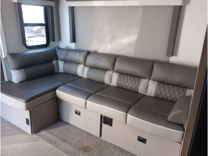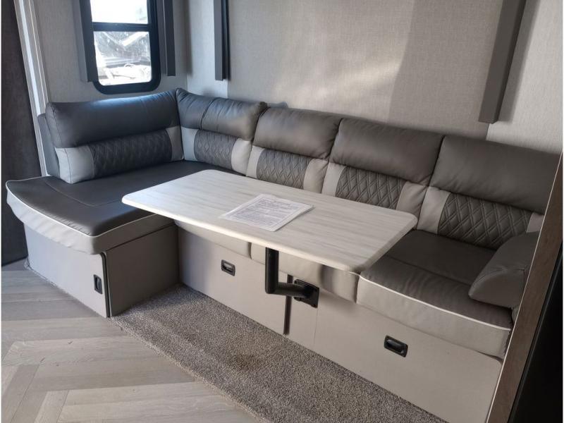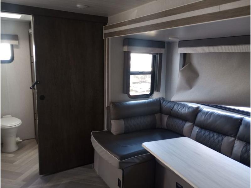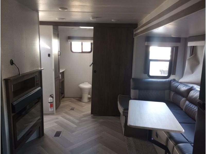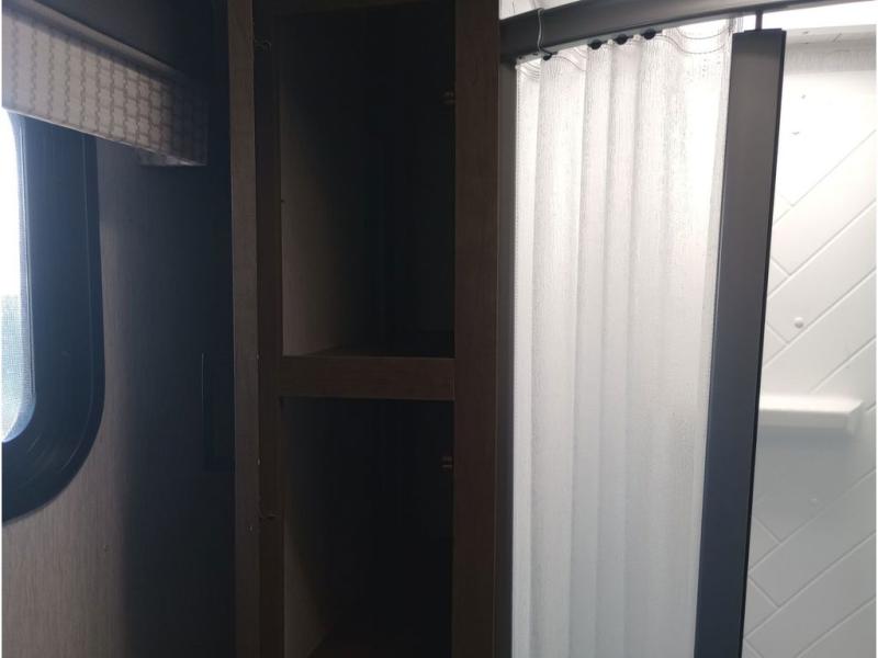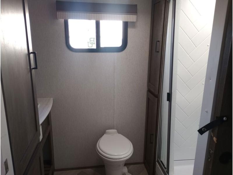 As you escape to the beautiful countryside or embark across the country to visit family, you'll find that the modern amenities found in this Wildwood travel trailer will deliver the ultimate enjoyment all along the way! Relax on the 8' chaise lounge that includes a table in front so that you can enjoy your morning coffee. When you are ready to face the day ahead, you can grab a towel from the linen closet in the rear bathroom and rinse off in the walk-in shower before heading out for a day full of adventure. This model also includes a walk-in pantry for all the goodies!