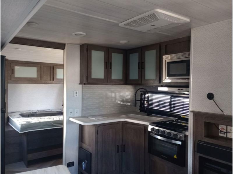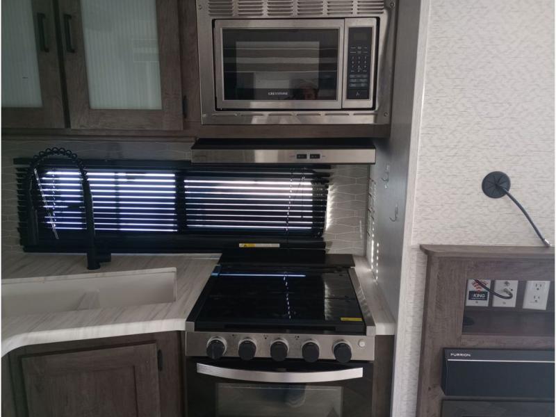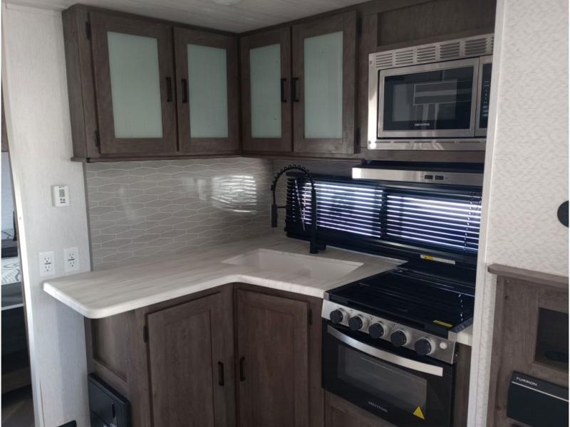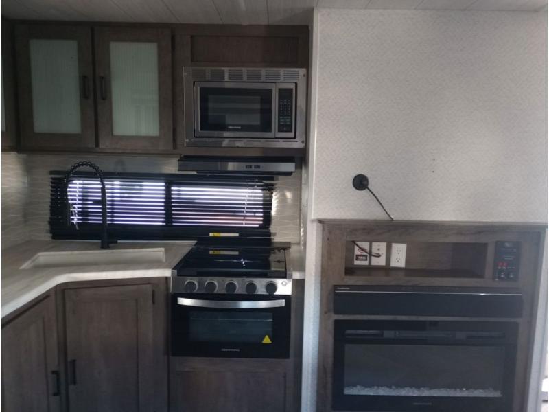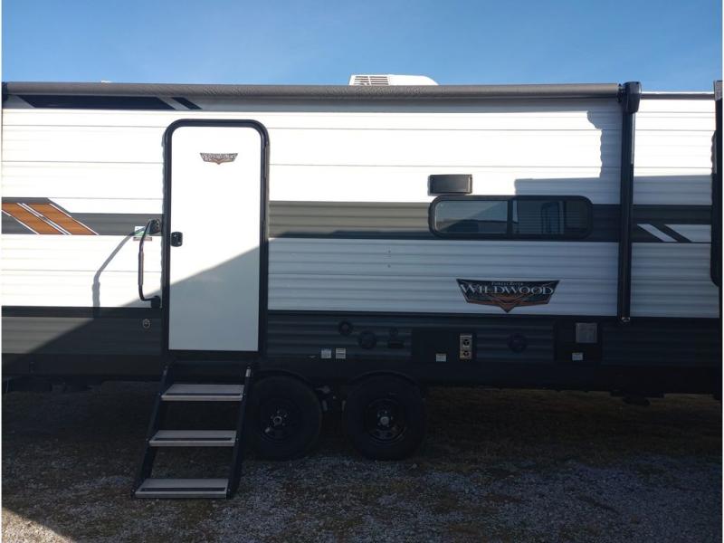 Forest River offers you the highest quality and the best components in its Wildwood travel trailer! The fully walkable one-piece roof is ultra reliable, and the rest of the construction is just as dependable with the powder-coated I-beam frame, cambered chassis, R-7 fiberglass insulation, nitrogen-filled tires, and triple-seal slide-out system. The Wildwood is not only full of quality, but it is also full of style with its herringbone luxury vinyl flooring, upgraded designer furniture, high-gloss exterior metal, and seamless countertops. The Wildwood also comes with some extra features that will make your life more comfortable, like the exterior speakers with blue LED light, the tablet-compatible USB ports, the residential vanity with shower caddy, and true stabilizer jacks with JT's Strong Arm.