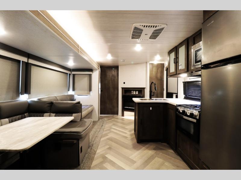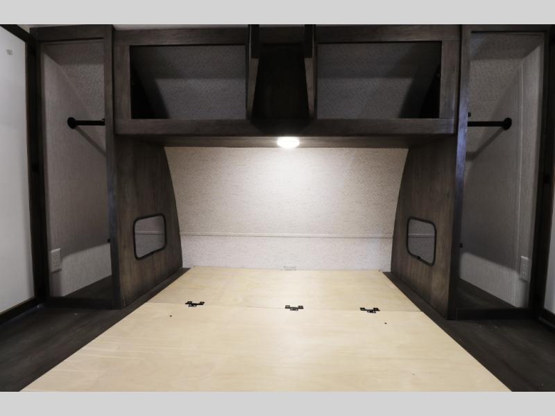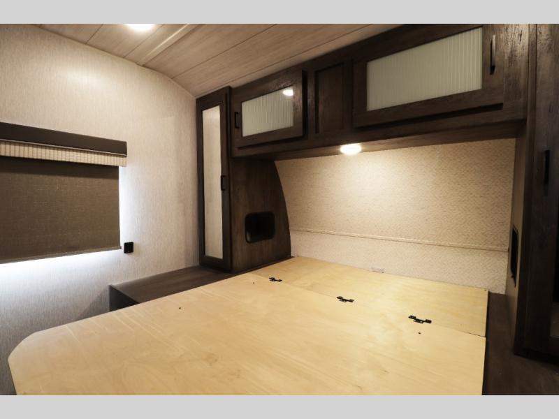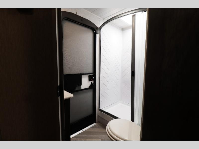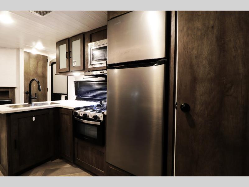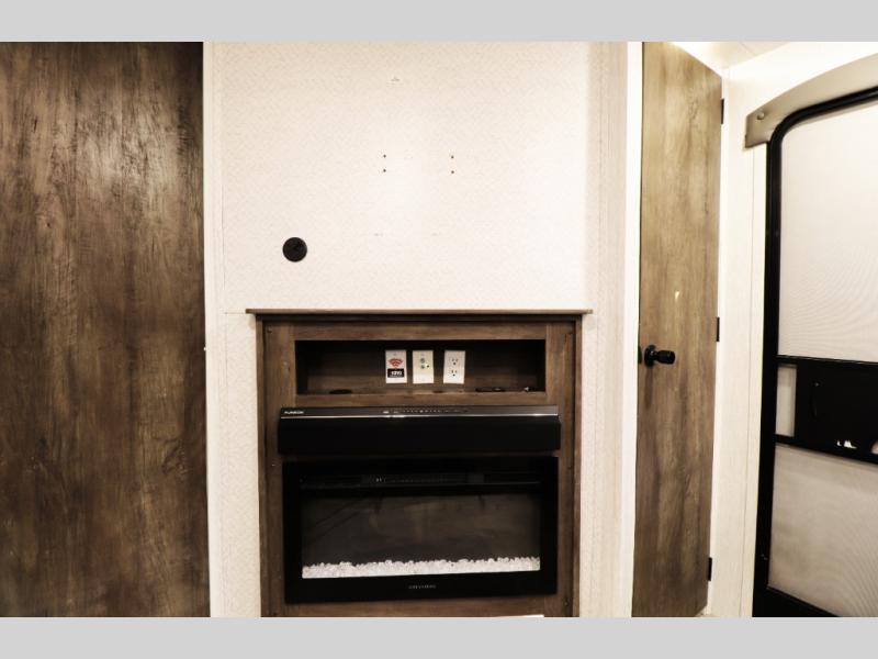 This Wildwood travel trailer also features modern comfort and convenience features that today’s RV buyers are looking for. Highlights include a cozy electric fireplace for warmth and ambiance, 13,500 BTU air conditioning for hot summer trips, tankless water heater, and an oversized refrigerator for extended camping stays. Exterior features such as the large power awning with LED lighting, solar prep, and durable construction make outdoor living and off-grid adventures easier than ever. With 40-gallon fresh water, 60-gallon gray water, and 30-gallon black water tank capacities, you’ll have the capacity needed for longer trips without constantly searching for hookups.
