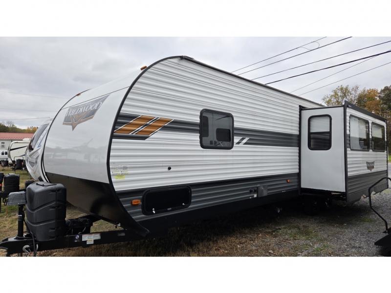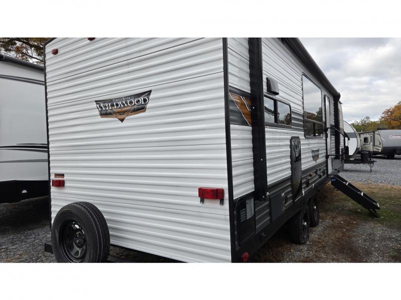Forest River offers you the highest quality and the best components in its Wildwood travel trailer! The fully walkable one-piece roof is ultra reliable, and the rest of the construction is just as dependable with the powder-coated I-beam frame, cambered chassis, R-7 fiberglass insulation, nitrogen-filled tires, and triple-seal slide-out system. The Wildwood is not only full of quality, but it is also full of style with its herringbone luxury vinyl flooring, upgraded designer furniture, high-gloss exterior metal, and seamless countertops. The Wildwood also comes with some extra features that will make your life more comfortable, like the exterior speakers with blue LED light, the tablet-compatible USB ports, the residential vanity with shower caddy, and true stabilizer jacks with JT's Strong Arm.