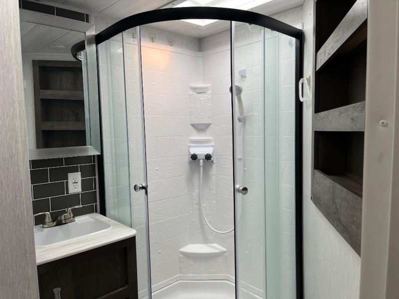 Forest River offers you the highest quality and the best components in its Wildwood travel trailer! The fully walkable one-piece roof is ultra reliable, and the rest of the construction is just as dependable with the powder-coated I-beam frame, cambered chassis, R-7 fiberglass insulation, nitrogen-filled tires, and triple-seal slide-out system. The Wildwood is not only full of quality, but it is also full of style with its herringbone luxury vinyl flooring, upgraded designer furniture, high-gloss exterior metal, and seamless countertops. The Wildwood also comes with some extra features that will make your life more comfortable, like the exterior speakers with blue LED light, the tablet-compatible USB ports, the residential vanity with shower caddy, and true stabilizer jacks with JT's Strong Arm.