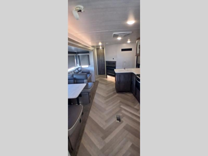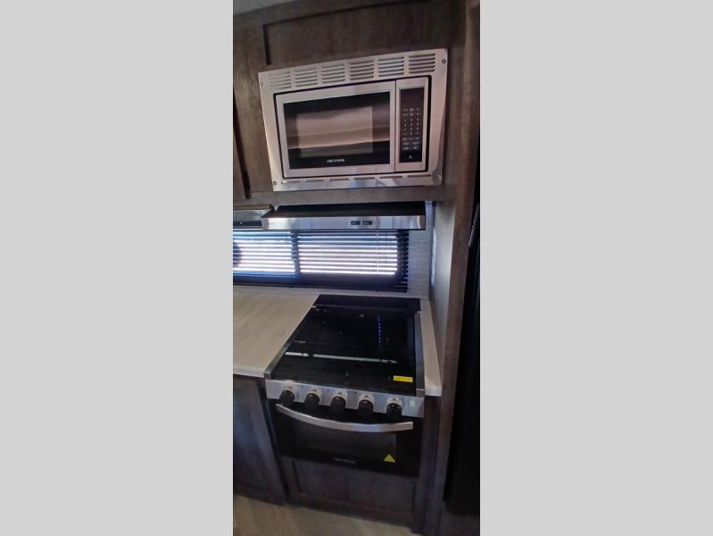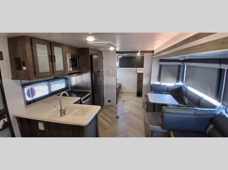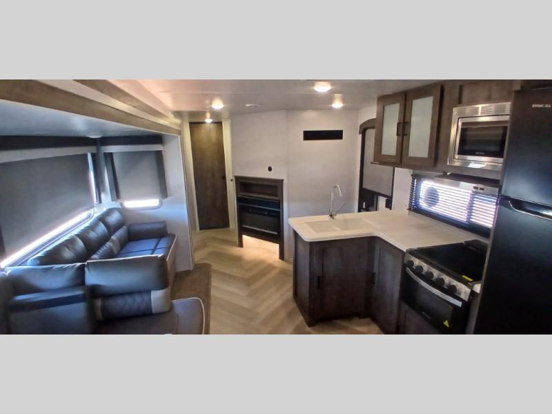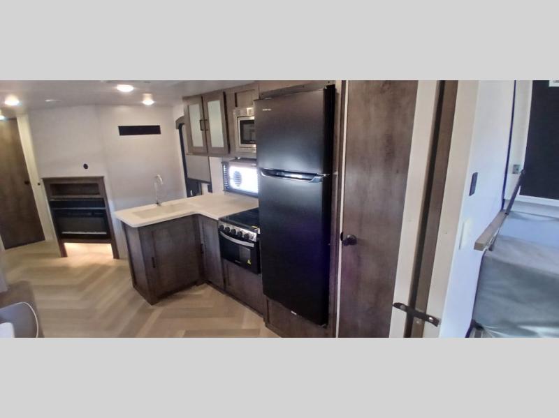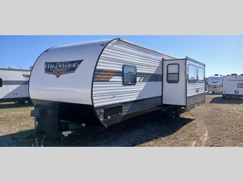 Forest River offers you the highest quality and the best components in its Wildwood travel trailer! The fully walkable one-piece roof is ultra reliable, and the rest of the construction is just as dependable with the powder-coated I-beam frame, cambered chassis, R-7 fiberglass insulation, nitrogen-filled tires, and triple-seal slide-out system. The Wildwood is not only full of quality, but it is also full of style with its herringbone luxury vinyl flooring, upgraded designer furniture, high-gloss exterior metal, and seamless countertops. The Wildwood also comes with some extra features that will make your life more comfortable, like the exterior speakers with blue LED light, the tablet-compatible USB ports, the residential vanity with shower caddy, and true stabilizer jacks with JT's Strong Arm.