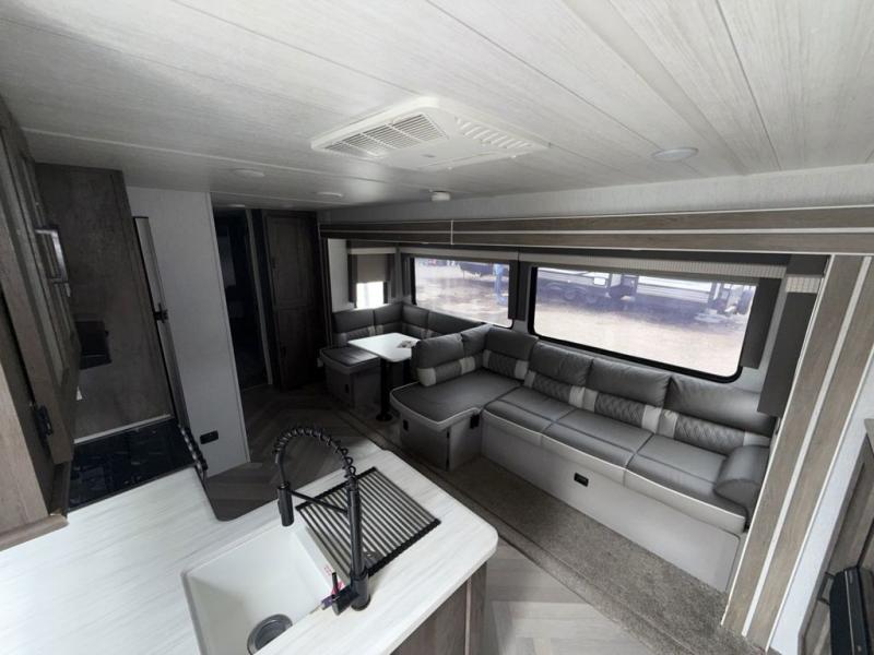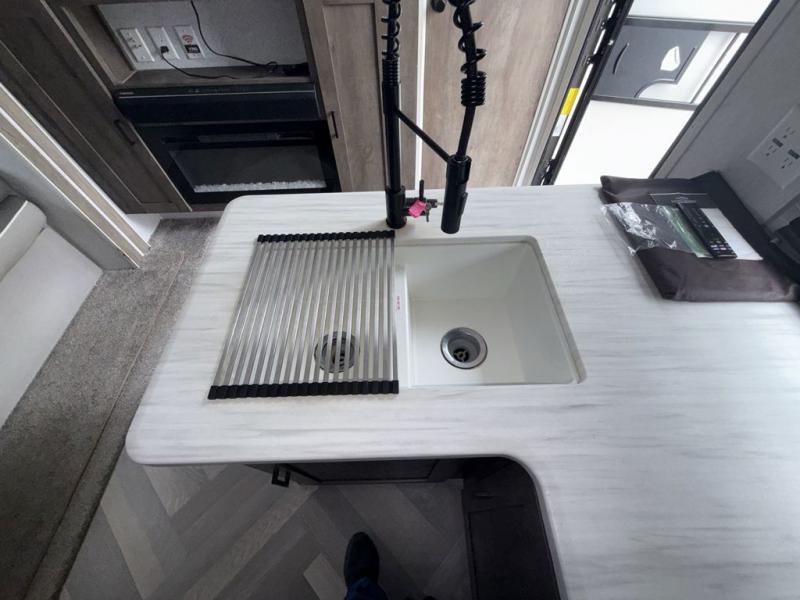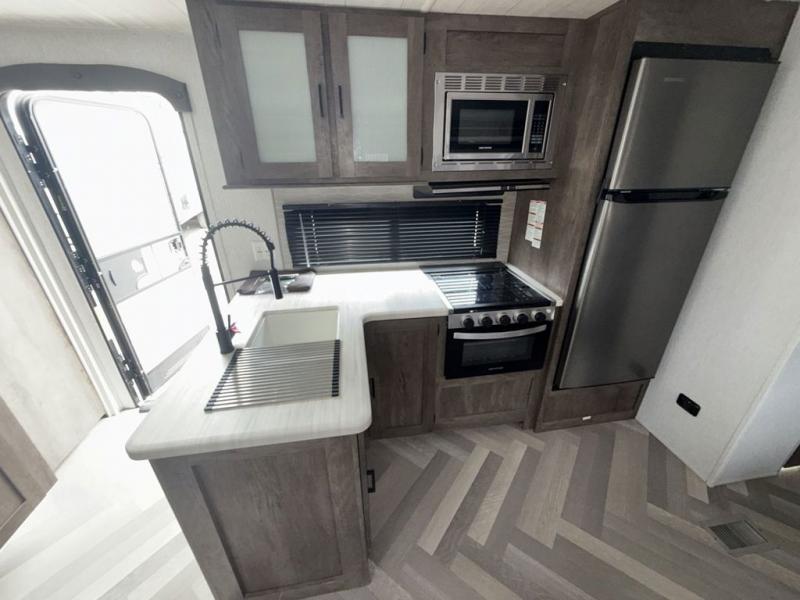 Forest River offers you the highest quality and the best components in its Wildwood travel trailer! The fully walkable one-piece roof is ultra reliable, and the rest of the construction is just as dependable with the powder-coated I-beam frame, cambered chassis, R-7 fiberglass insulation, nitrogen-filled tires, and triple-seal slide-out system. The Wildwood is not only full of quality, but it is also full of style with its herringbone luxury vinyl flooring, upgraded designer furniture, high-gloss exterior metal, and seamless countertops. The Wildwood also comes with some extra features that will make your life more comfortable, like the exterior speakers with blue LED light, the tablet-compatible USB ports, the residential vanity with shower caddy, and true stabilizer jacks with JT's Strong Arm.