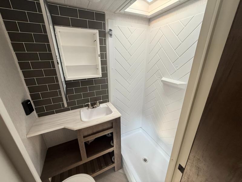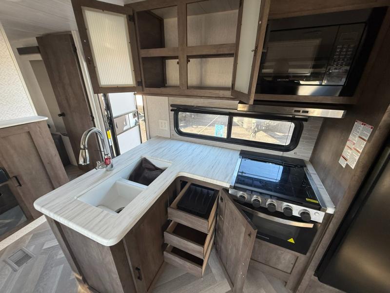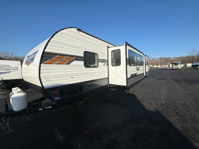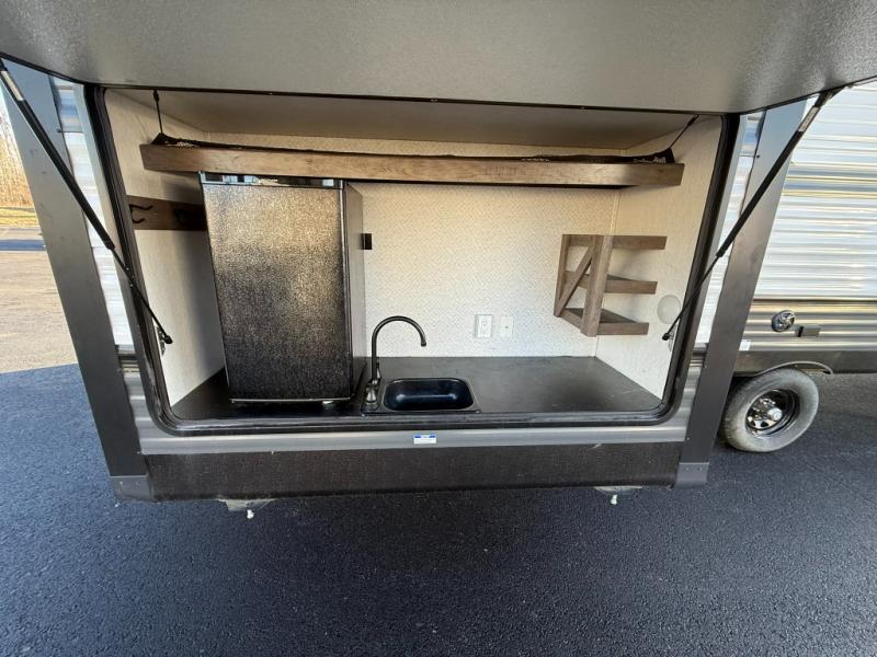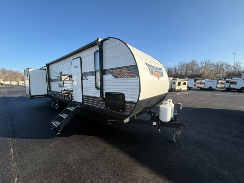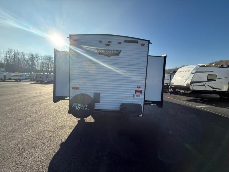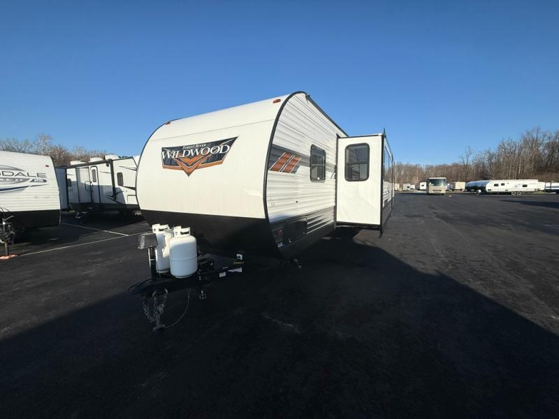 Forest River offers you the highest quality and the best components in its Wildwood travel trailer! The fully walkable one-piece roof is ultra reliable, and the rest of the construction is just as dependable with the powder-coated I-beam frame, cambered chassis, R-7 fiberglass insulation, nitrogen-filled tires, and triple-seal slide-out system. The Wildwood is not only full of quality, but it is also full of style with its herringbone luxury vinyl flooring, upgraded designer furniture, high-gloss exterior metal, and seamless countertops. The Wildwood also comes with some extra features that will make your life more comfortable, like the exterior speakers with blue LED light, the tablet-compatible USB ports, the residential vanity with shower caddy, and true stabilizer jacks with JT's Strong Arm.