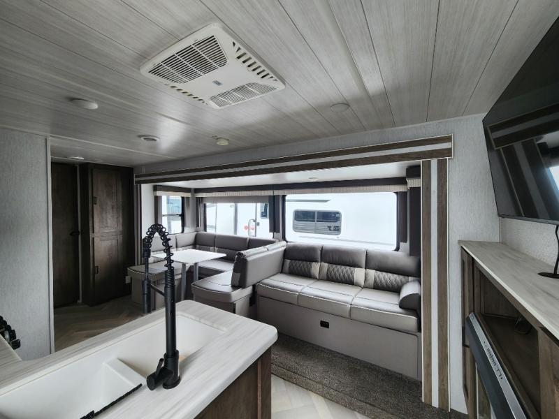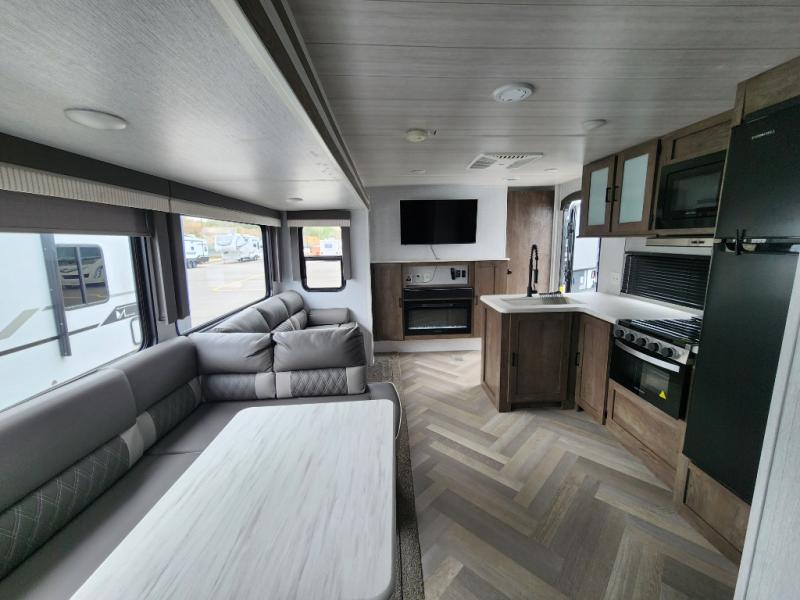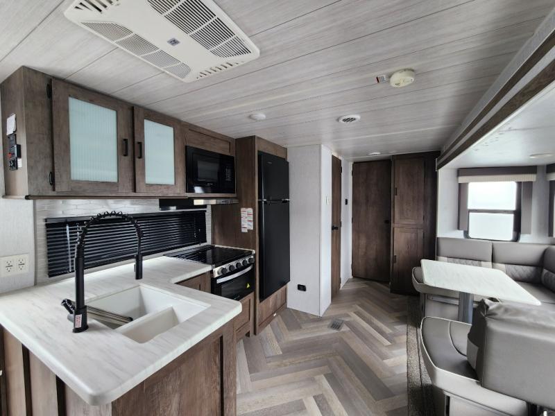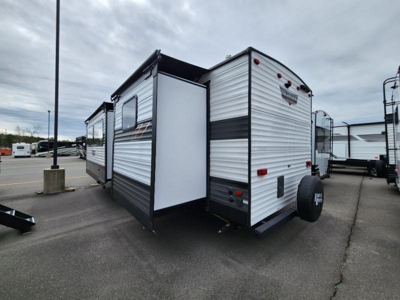 Forest River offers you the highest quality and the best components in its Wildwood travel trailer! The fully walkable one-piece roof is ultra reliable, and the rest of the construction is just as dependable with the powder-coated I-beam frame, cambered chassis, R-7 fiberglass insulation, nitrogen-filled tires, and triple-seal slide-out system. The Wildwood is not only full of quality, but it is also full of style with its herringbone luxury vinyl flooring, upgraded designer furniture, high-gloss exterior metal, and seamless countertops. The Wildwood also comes with some extra features that will make your life more comfortable, like the exterior speakers with blue LED light, the tablet-compatible USB ports, the residential vanity with shower caddy, and true stabilizer jacks with JT's Strong Arm.
