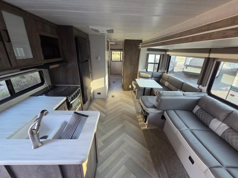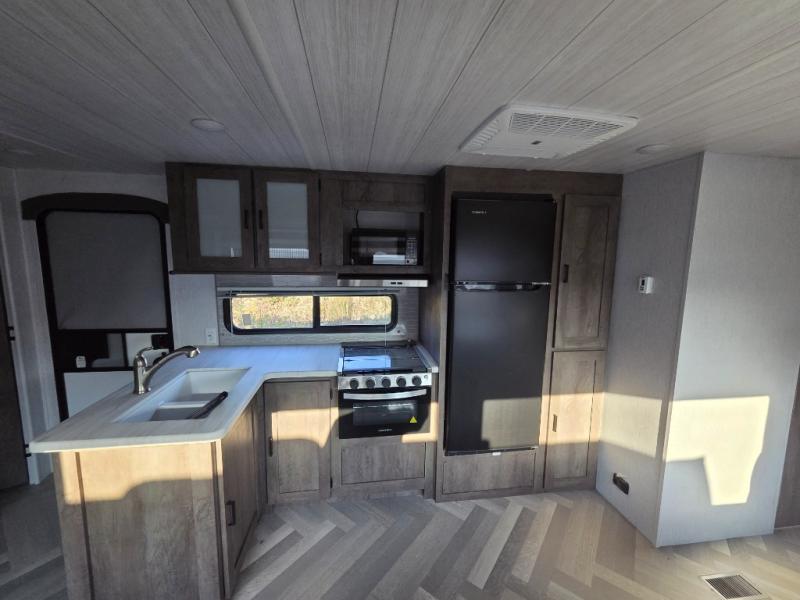 Forest River offers you the highest quality and the best components in its Wildwood travel trailer! The fully walkable one-piece roof is ultra reliable, and the rest of the construction is just as dependable with the powder-coated I-beam frame, cambered chassis, R-7 fiberglass insulation, nitrogen-filled tires, and triple-seal slide-out system. The Wildwood is not only full of quality, but it is also full of style with its herringbone luxury vinyl flooring, upgraded designer furniture, high-gloss exterior metal, and seamless countertops. The Wildwood also comes with some extra features that will make your life more comfortable, like the exterior speakers with blue LED light, the tablet-compatible USB ports, the residential vanity with shower caddy, and true stabilizer jacks with JT's Strong Arm.