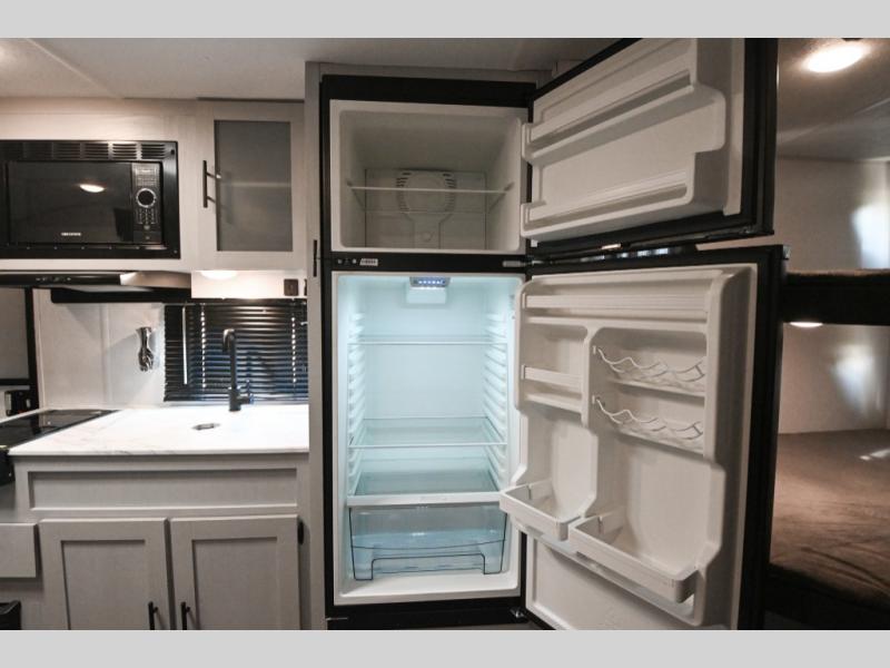 The Forest River Wildwood FSX travel trailer and toy haulers are easy to tow and easy to love, so come take a look! With each model you'll appreciate the 20K BTU furnace and 13,500 BTU A/C to keep you comfortable year around, and the large windows will make the whole unit seem bright and open. The EZ entrance includes an XL folding grab assist handle, and the power awning with LED lights provide an outdoor living space you are sure to love. The lightweight Wildwood FSX travel trailers and toy haulers are your ticket to the great outdoors. Choose yours today!