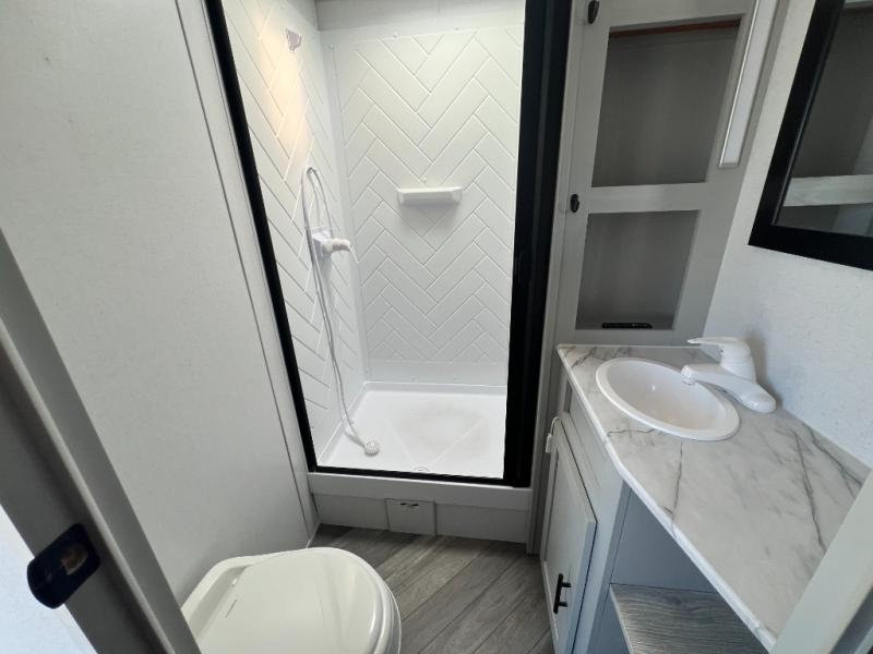 The Forest River Wildwood FSX travel trailer and toy haulers are easy to tow and easy to love, so come take a look! With each model you'll appreciate the 20K BTU furnace and 13,500 BTU A/C to keep you comfortable year around, and the large windows will make the whole unit seem bright and open. The EZ entrance includes an XL folding grab assist handle, and the power awning with LED lights provide an outdoor living space you are sure to love. The lightweight Wildwood FSX travel trailers and toy haulers are your ticket to the great outdoors. Choose yours today!