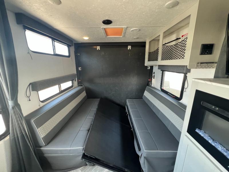 Take your adventures to the max in this MAX toy hauler with more space and features! Unload your dirt bikes from the 14' garage, then convert this space to the 1,500 lb. patio. This model includes two sofa sleepers with a table, or you can choose the optional quad bunk system to sleep even more friends. The main living area will feel more like home with a fireplace, and the full kitchen will allow you to prepare meals for your whole group. If you enjoy cooking outdoors then you will love the outdoor griddle and refrigerator, plus there is an 18' power awning here for shade. After dinner is cleaned up, head to the front private bedroom for a great night's rest and plan to do it all over again tomorrow!