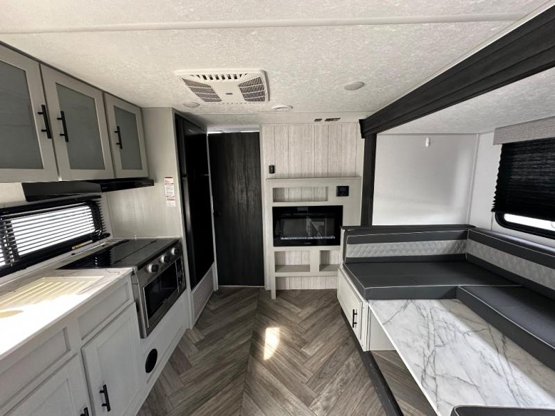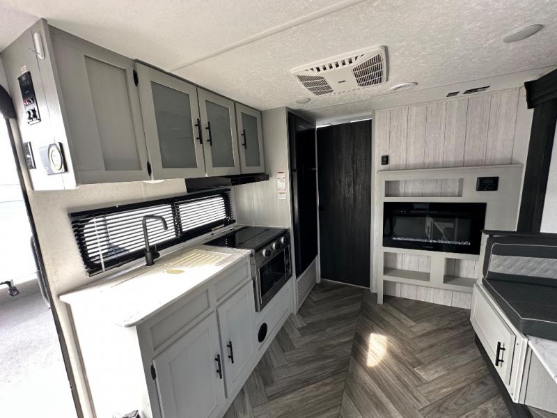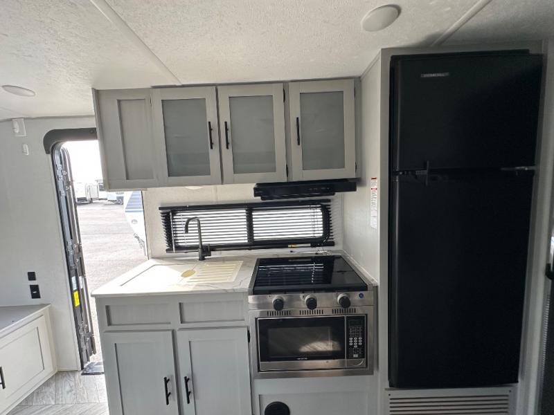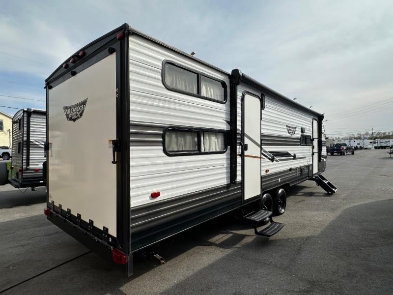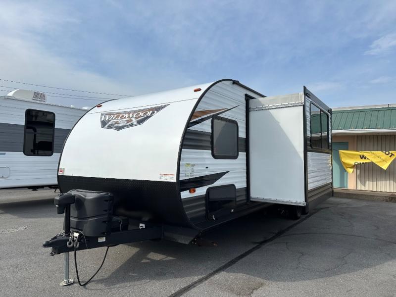 The Forest River Wildwood FSX travel trailer and toy haulers are easy to tow and easy to love, so come take a look! With each model you'll appreciate the 20K BTU furnace and 13,500 BTU A/C to keep you comfortable year around, and the large windows will make the whole unit seem bright and open. The EZ entrance includes an XL folding grab assist handle, and the power awning with LED lights provide an outdoor living space you are sure to love. The lightweight Wildwood FSX travel trailers and toy haulers are your ticket to the great outdoors. Choose yours today!