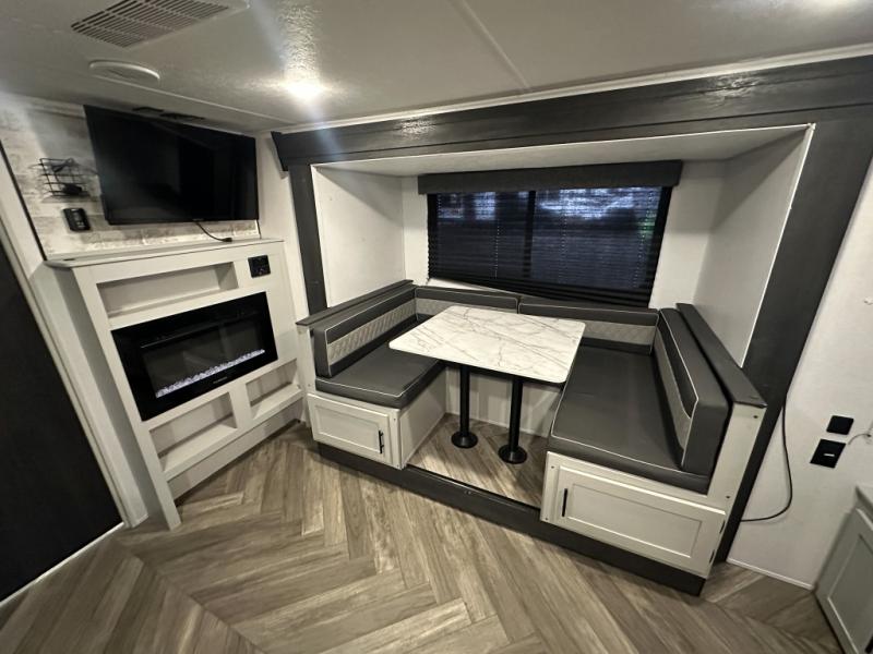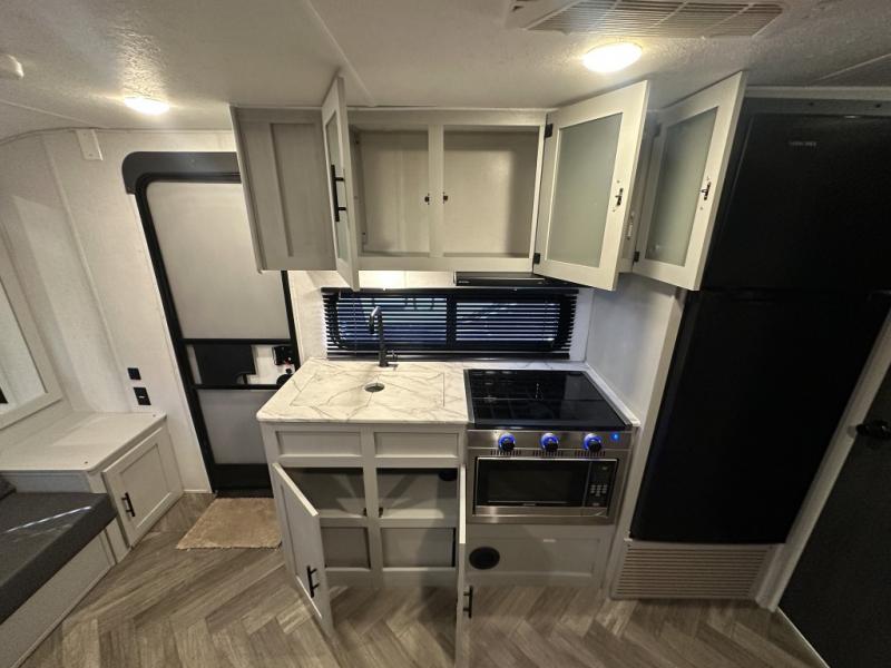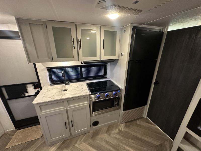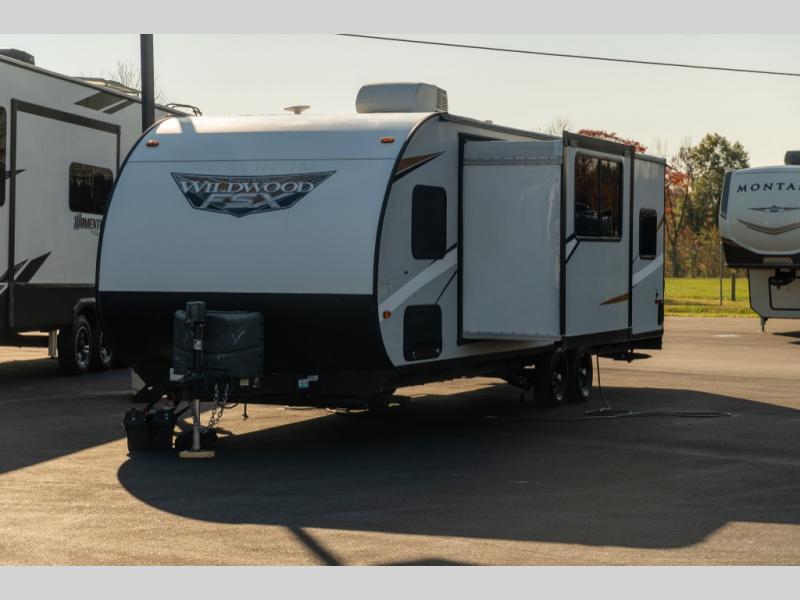 The Forest River Wildwood FSX travel trailer and toy haulers are easy to tow and easy to love, so come take a look! With each model you'll appreciate the 20K BTU furnace and 13,500 BTU A/C to keep you comfortable year around, and the large windows will make the whole unit seem bright and open. The EZ entrance includes an XL folding grab assist handle, and the power awning with LED lights provide an outdoor living space you are sure to love. The lightweight Wildwood FSX travel trailers and toy haulers are your ticket to the great outdoors. Choose yours today!