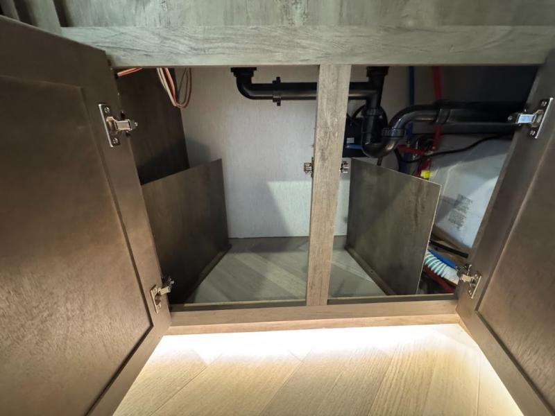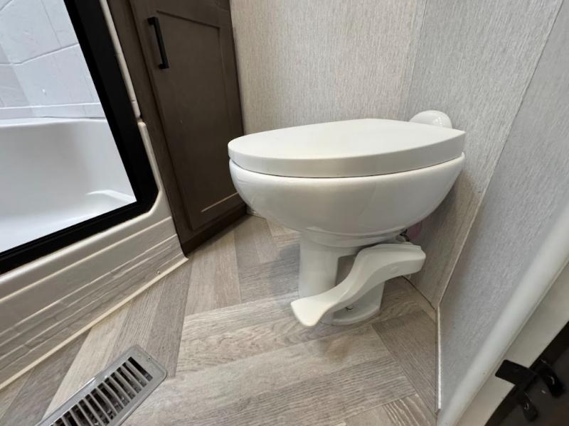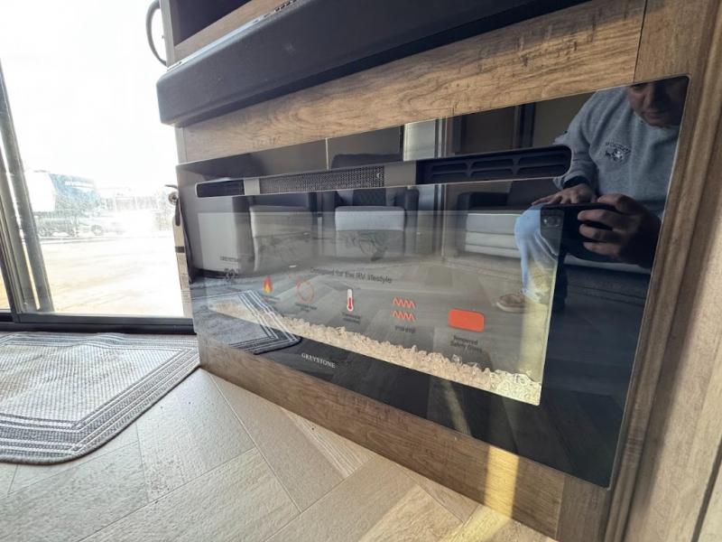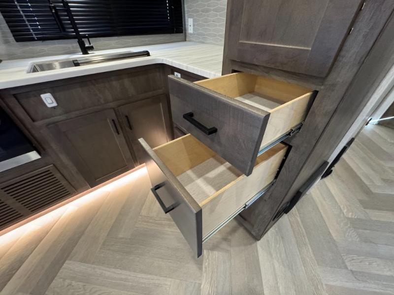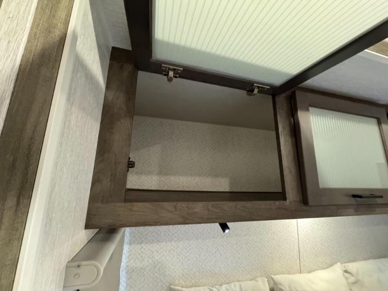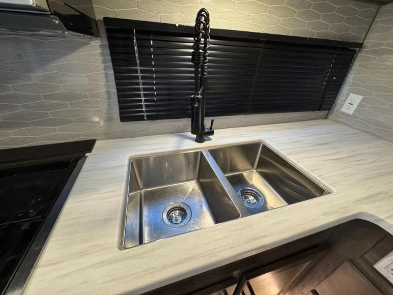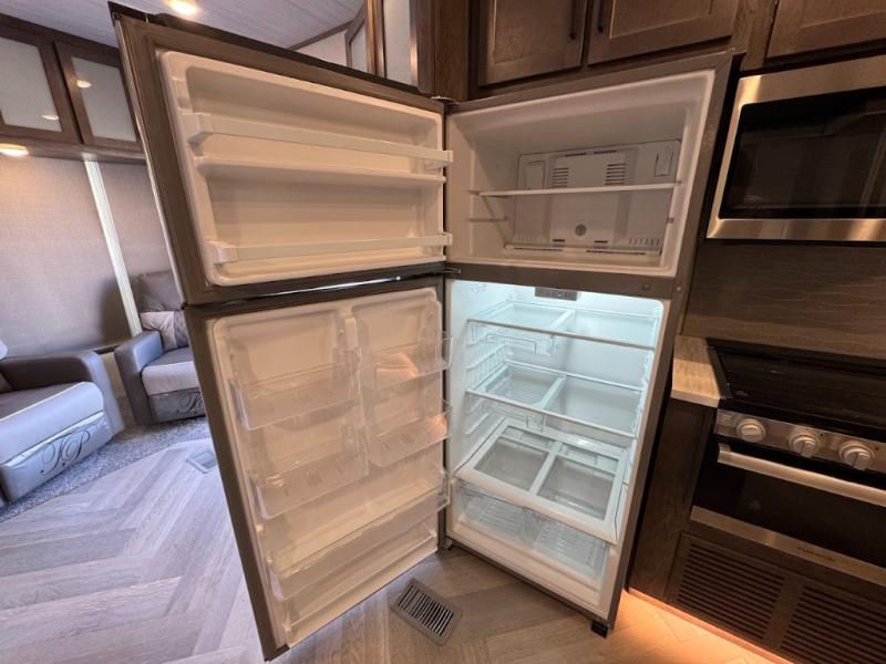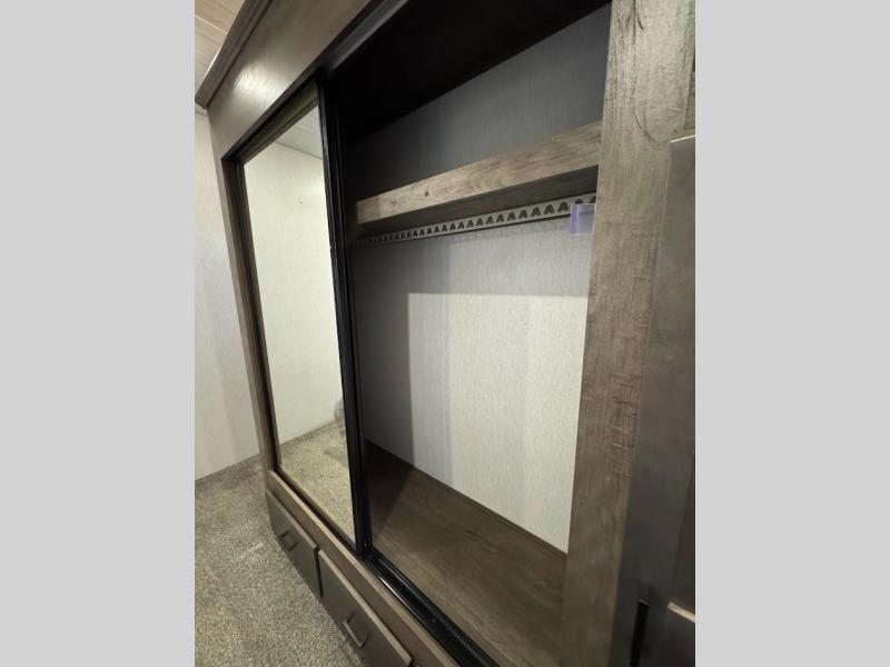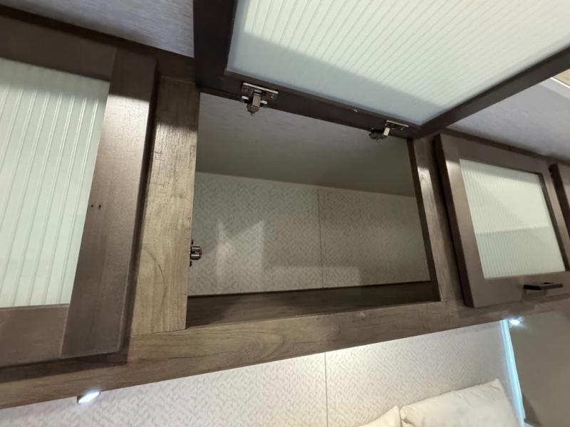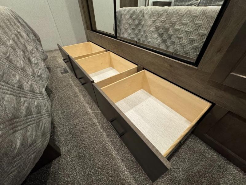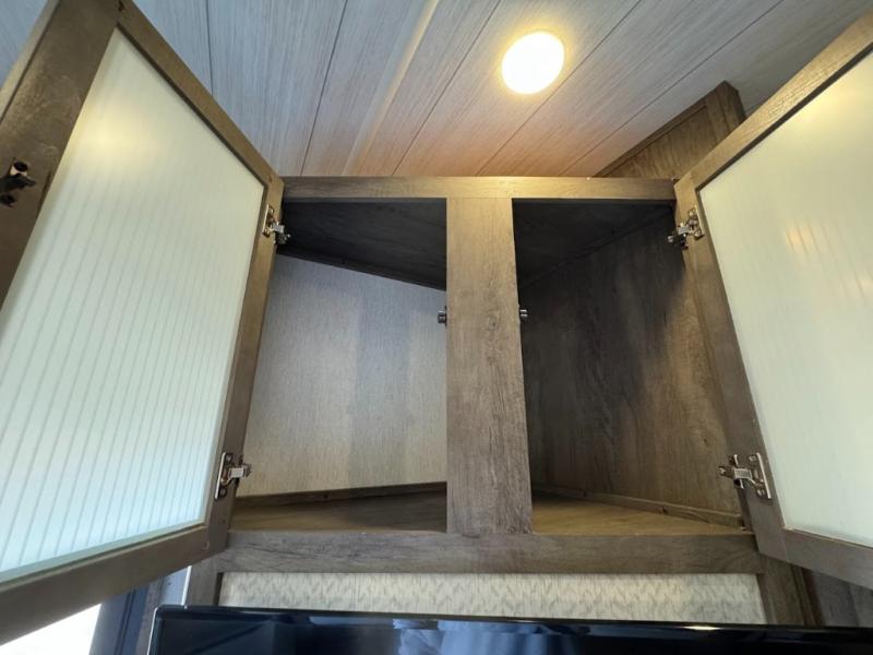 With plenty of space to stretch out and make memories, this Wildwood Lodge destination trailer is just what you need! The full bathroom is loaded with helpful amenities, like a 50" walk-in shower, skylight, residential-inspired vanity, and linen closet, and the bedroom is also filled with convenience as it contains a king bed slide, USB ports, a large closet, and the second exterior entry door. Out in the kitchen you will find everything that you need to create family-style dinners, and the large slide is going to allow you to have plenty of space to work freely in the kitchen.