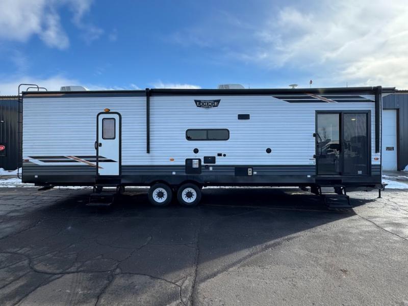 You just can't beat the Forest River Wildwood Lodge destination trailer! These trailers create the perfect camping destination in and of themselves. The 8' interior ceiling is accommodating even for the tallest person in your family, and the front bay window, panoramic windows, and sliding patio door add an extra dose of sunshine and additional views of your surroundings to the interior. The upgraded designer furniture is going to keep your family comfortable as they relax, and the heated/enclosed accessi-belly is a feature that will allow you to camp in cooler weather conditions. The stainless steel appliances are attractive, and the central vacuum with sweep attachment is extremely useful for cleaning your trailer even while you are still out camping.