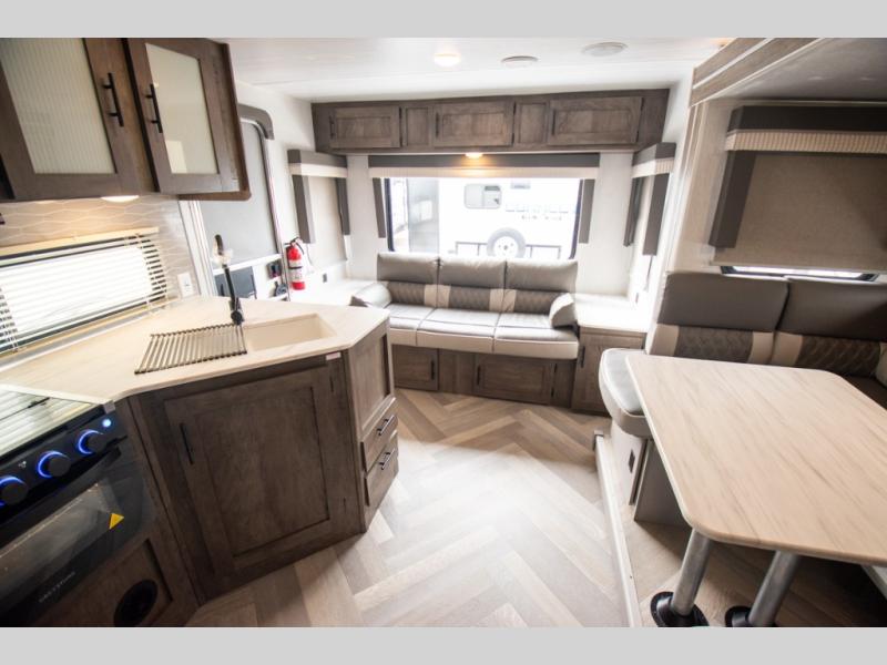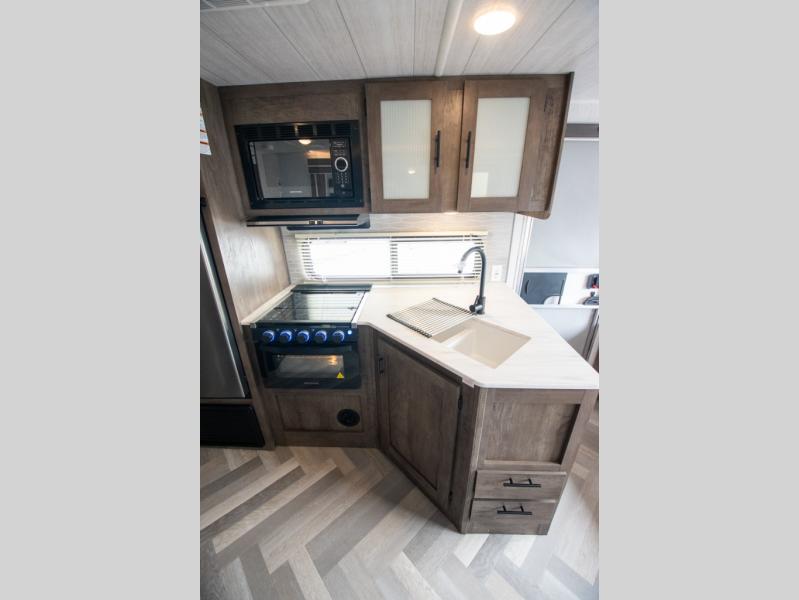 The Forest River Wildwood X-Lite travel trailers are comfortable enough to make any destination feel like home! The Wildwood X-Lite has a one-piece SuperFlex roof, a powder-coated I-beam frame, nitrogen-filled tires, a triple-seal slide system, and a cambered chassis as the base for all of its luxurious additions. Within the reliable construction, you will find excellent interior amenities, like a herringbone luxury vinyl flooring, a shiplap wall board, a huge kitchen window, USB ports, a Bluetooth stereo, and upgraded designer furniture. The Wildwood X-Lite also comes with a pass-through storage compartment so that you can make the most of every adventure by bringing along the essentials.