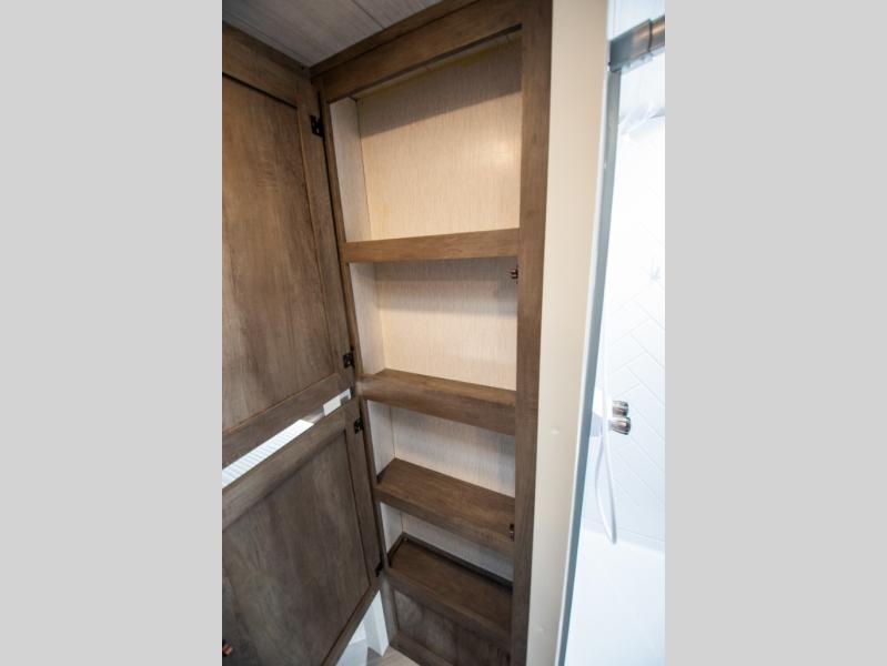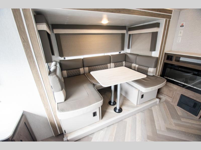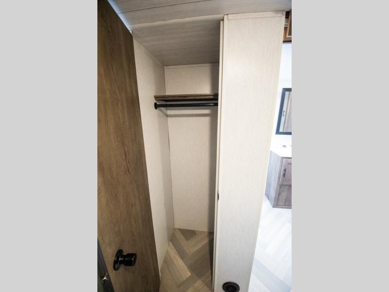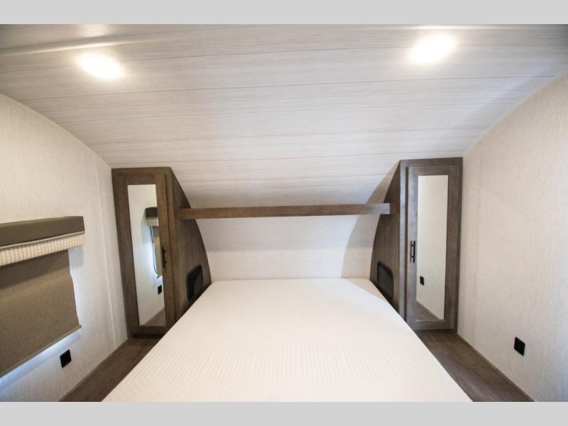 Whether it's a family vacation or a romantic getaway with your significant other, this Wildwood X-Lite travel trailer will make it the very best! The master bedroom has many places to store items with the walk-in closet and bedside closets, and the walk-through bath also provides additional storage with the linen closet and residential vanity. The kitchen has modern amenities, like an 11-cubic foot refrigerator, a microwave, and a three-burner cooktop, plus the U-shaped dinette has panoramic windows that surround it to create an inviting space to spend your time. And you will enjoy the protection from the 16' power awning and the sturdy Step Above steps.