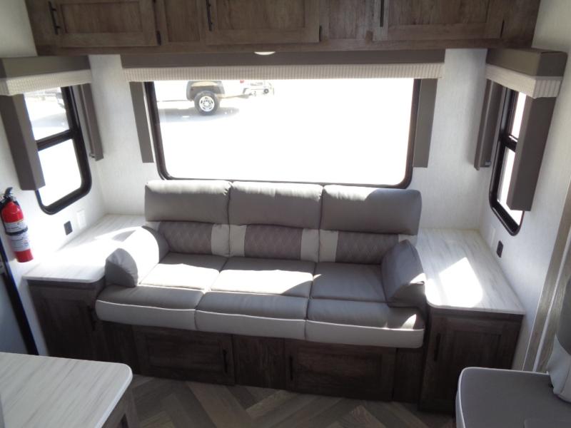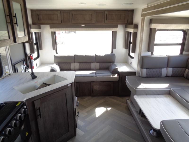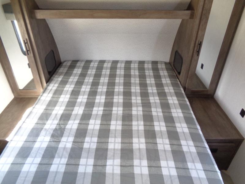 Whether it's a family vacation or a romantic getaway with your significant other, this Wildwood X-Lite travel trailer will make it the very best! The master bedroom has many places to store items with the walk-in closet and bedside closets, and the walk-through bath also provides additional storage with the linen closet and residential vanity. The kitchen has modern amenities, like an 11-cubic foot refrigerator, a microwave, and a three-burner cooktop, plus the U-shaped dinette has panoramic windows that surround it to create an inviting space to spend your time. And you will enjoy the protection from the 16' power awning and the sturdy Step Above steps.