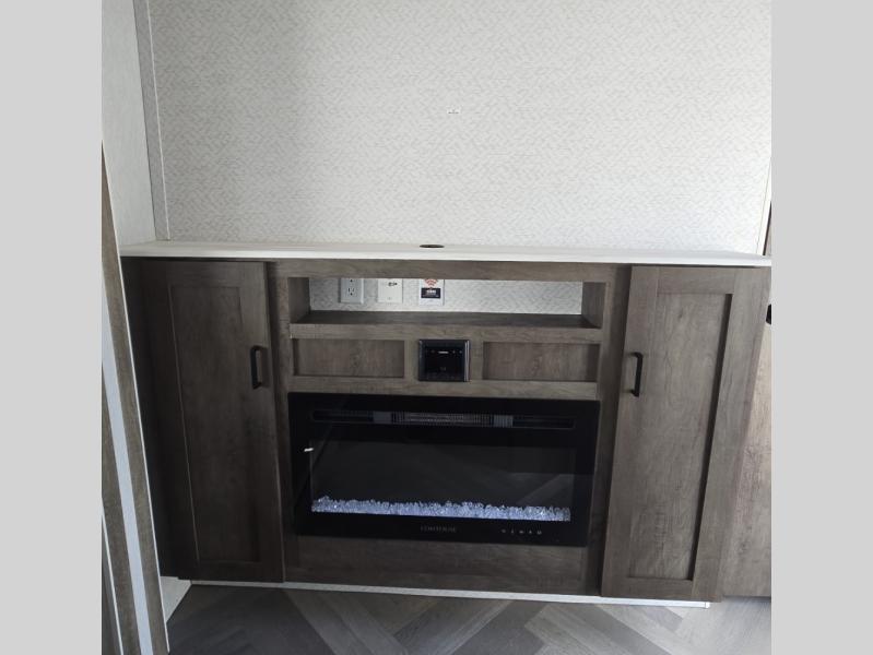 If you need a trailer that will enhance your family getaways, this Wildwood X-Lite travel trailer is it! Because of the double-size bunks in the back and the walk-around bed in the front private bedroom, your family can stretch out and sleep comfortably, and the Versa Lounge, which is made up of a U-shaped dinette and sofa, can also transform into extra sleeping space if needed. The whole family will enjoy how accessible the full bathroom is because it contains both an interior and exterior entry door, and the entertainment center with fireplace is certainly going to enrich your time spent indoors. Enjoy breakfast outdoors with the outside camp kitchen too!