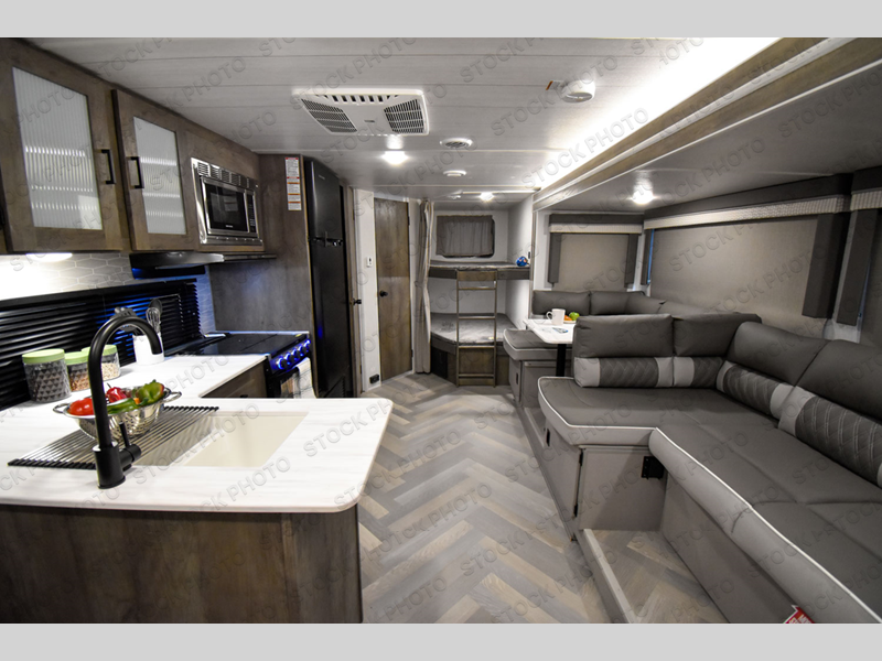 The Forest River Wildwood X-Lite travel trailers are comfortable enough to make any destination feel like home! The Wildwood X-Lite has a one-piece SuperFlex roof, a powder-coated I-beam frame, nitrogen-filled tires, a triple-seal slide system, and a cambered chassis as the base for all of its luxurious additions. Within the reliable construction, you will find excellent interior amenities, like a herringbone luxury vinyl flooring, a shiplap wall board, a huge kitchen window, USB ports, a Bluetooth stereo, and upgraded designer furniture. The Wildwood X-Lite also comes with a pass-through storage compartment so that you can make the most of every adventure by bringing along the essentials.