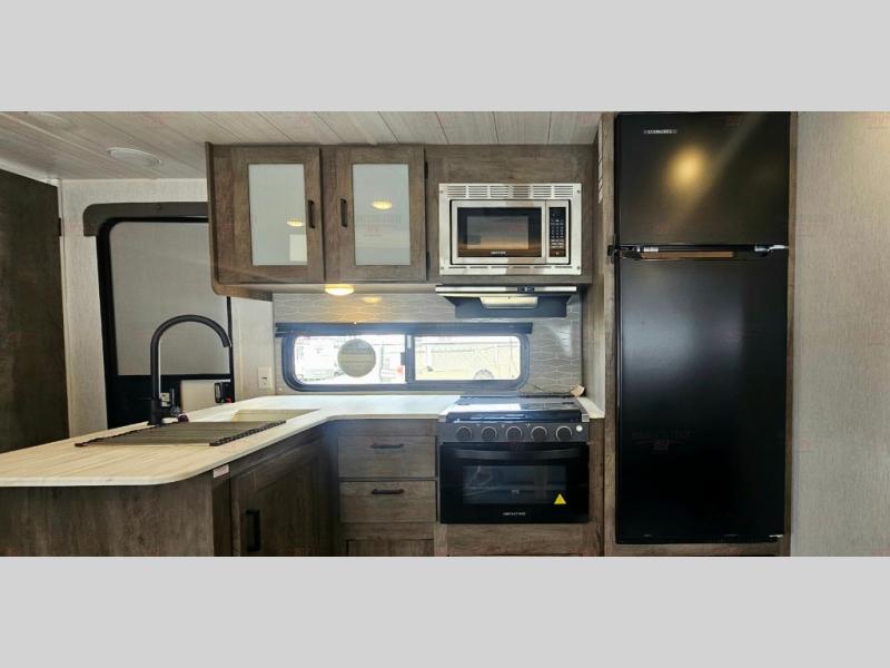 The Forest River Wildwood X-Lite travel trailers are comfortable enough to make any destination feel like home! The Wildwood X-Lite has a one-piece SuperFlex roof, a powder-coated I-beam frame, nitrogen-filled tires, a triple-seal slide system, and a cambered chassis as the base for all of its luxurious additions. Within the reliable construction, you will find excellent interior amenities, like a herringbone luxury vinyl flooring, a shiplap wall board, a huge kitchen window, USB ports, a Bluetooth stereo, and upgraded designer furniture. The Wildwood X-Lite also comes with a pass-through storage compartment so that you can make the most of every adventure by bringing along the essentials.