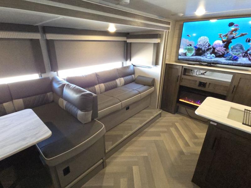 The Forest River Wildwood X-Lite travel trailers are comfortable enough to make any destination feel like home! The Wildwood X-Lite has a one-piece SuperFlex roof, a powder-coated I-beam frame, nitrogen-filled tires, a triple-seal slide system, and a cambered chassis as the base for all of its luxurious additions. Within the reliable construction, you will find excellent interior amenities, like a herringbone luxury vinyl flooring, a shiplap wall board, a huge kitchen window, USB ports, a Bluetooth stereo, and upgraded designer furniture. The Wildwood X-Lite also comes with a pass-through storage compartment so that you can make the most of every adventure by bringing along the essentials.