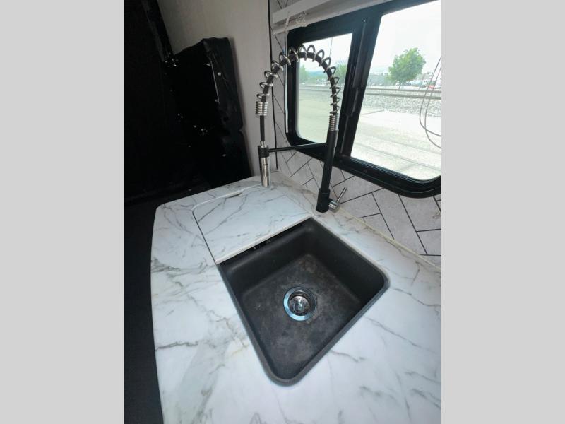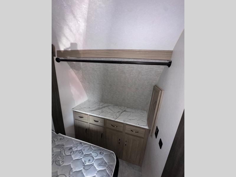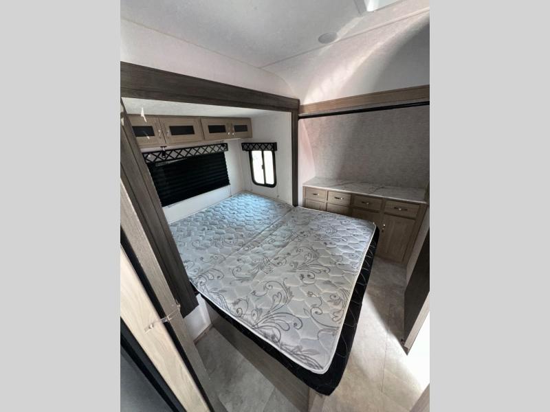 Each Work and Play toy hauler by Forest River is built tough with a mega rail powder coated chassis, a one-piece Tufflex PVC roof membrane, and a fiberglass front cap with rock guard. Towing is made hassle-free with the heavy duty Dexter axles with Nev-R-Adjust brakes and nitrogen filled tires. You will find many convenient features, such as a Winegard Air 360 and TV antenna, an outside spray port, and magnetic compartment door catches to store your riding gear. These toy haulers also include shaker style cabinets and doors, a residential bedspread, multiple USB ports for all your electronics, and many more amenities!
