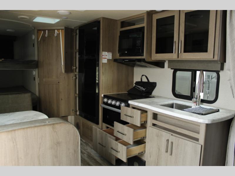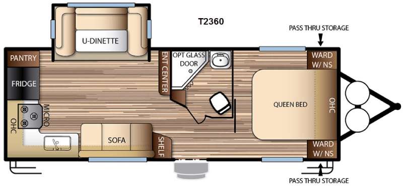 The EVO T2360 travel trailer by Forest River offers a a rear kitchen layout, a u-dinette slide out, plus a front private bedroom, and more!