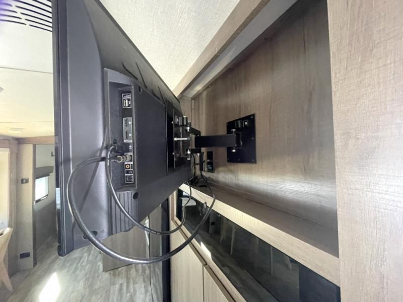 And when it’s time to unwind, kick back in your favorite spot under the power awning or curl up inside by the sofa with your favorite book. Whether you’re at a national park or a cozy campground, this trailer feels like home anywhere you park it.