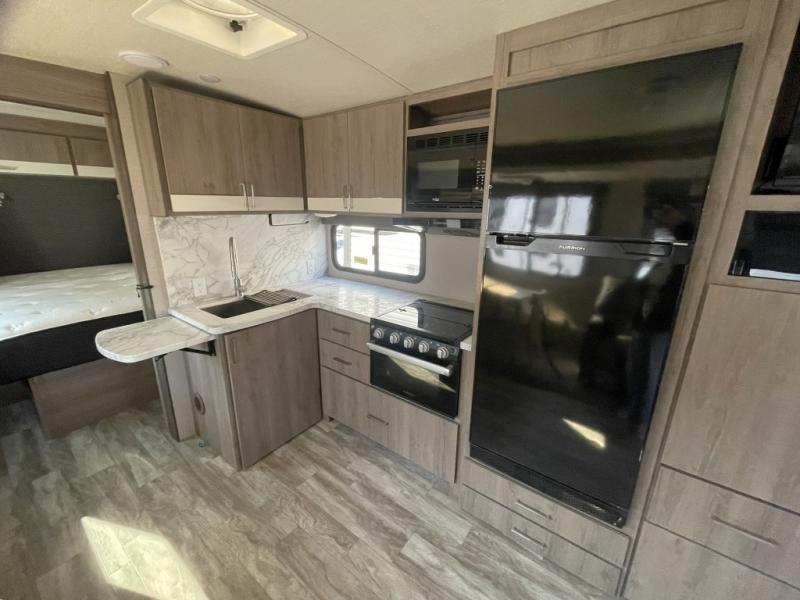 The Imagine 2600RB doesn’t just look good—it’s built for real-world adventure. The open floorplan offers seamless flow between the living, kitchen, and bedroom areas, while the large slide-out expands your space for entertaining or relaxing. The full kitchen includes a three-burner range with oven, microwave, deep stainless steel sink, and a refrigerator to keep meals simple and convenient on the go.