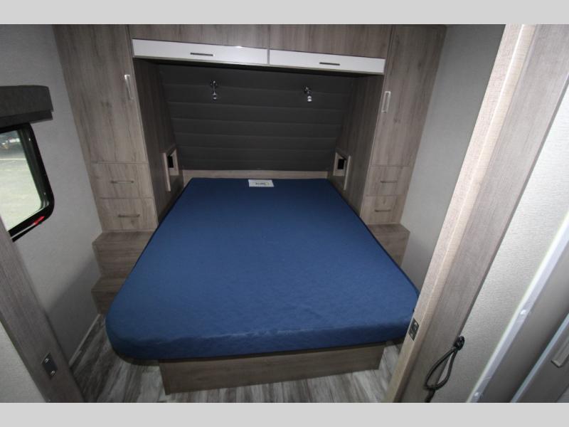 Just imagine leaving the world behind and secluding yourself away with your favorite people in your Grand Design Imagine travel trailer! The Imagine has been designed to enjoy extended season camping with its Four-Season Protection Package. This package includes a high-capacity furnace, a heated and enclosed underbelly with suspended tanks, a designated heat duct to the subfloor, and a high-density roof insulation with attic vent. You'll have maximum head room on the interior with 81" radius ceilings, and there is motion-sensor LED lighting in key areas so that you don't have to search for light switches in the dark. The exclusive drop-frame pass-through storage compartment is going to allow you to bring along lots of equipment, and the universal docking station is an all-in-one location for utilities and hook-ups. You'll also have industry-leading tank capacities so that you can fill and empty your tanks less often.